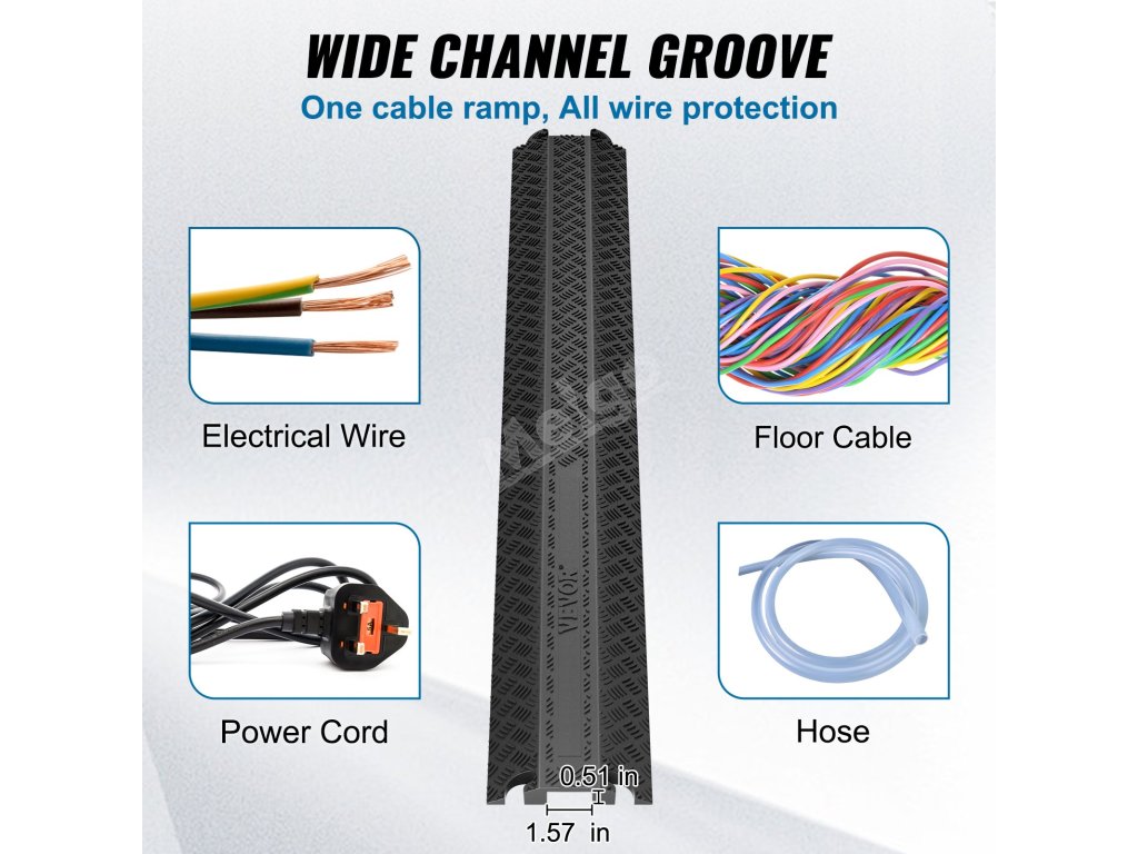 Najlepšie na tomto kryte kábla je, že podporuje nosnosť až 2000 libier. Vďaka tomu po ňom môžu bezpečne prechádzať vozidlá. Pevná konštrukcia vydrží aj pod tlakom. Je ideálny na miesta s intenzívnou premávkou. Mali by ste tiež skontrolovať, či je kryt kábla spoľahlivo chránený. Vďaka nosnosti je vhodný do rôznych prostredí. Skvele sa hodí do skladov, kancelárií a domácností. Pevná konštrukcia pomáha predchádzať nehodám. Bezpečnosť je pri našom chrániči káblov prvoradá. Zvládne hmotnosť chodcov aj vozidiel. Náš chránič kábla zvládne hmotnosť vozíkov a invalidných vozíkov. Vďaka tejto vlastnosti je všestranný a spoľahlivý, je to základný bezpečnostný nástroj pre každé prostredie.