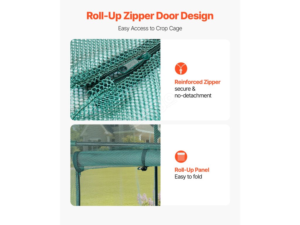 Tento kryt na rostliny je vybaven praktickými dvířky na zip, která usnadňují péči o rostliny. Dvířka se zapínají na zip a vytvářejí bezpečnou bariéru proti drobným živočichům, nebo se rozepínají, abyste měli snadný přístup k rostlinám a mohli se o ně bezproblémově starat.