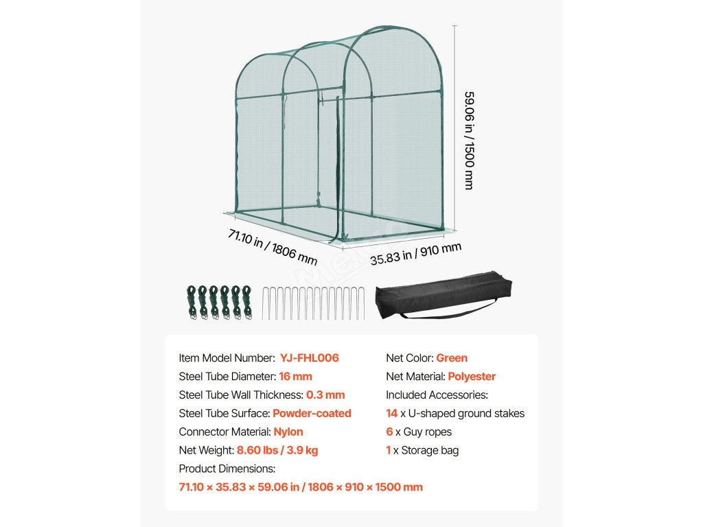 Ochranný kryt na rostliny 1.8×0.91×1.5 m se zipem a síťovinou