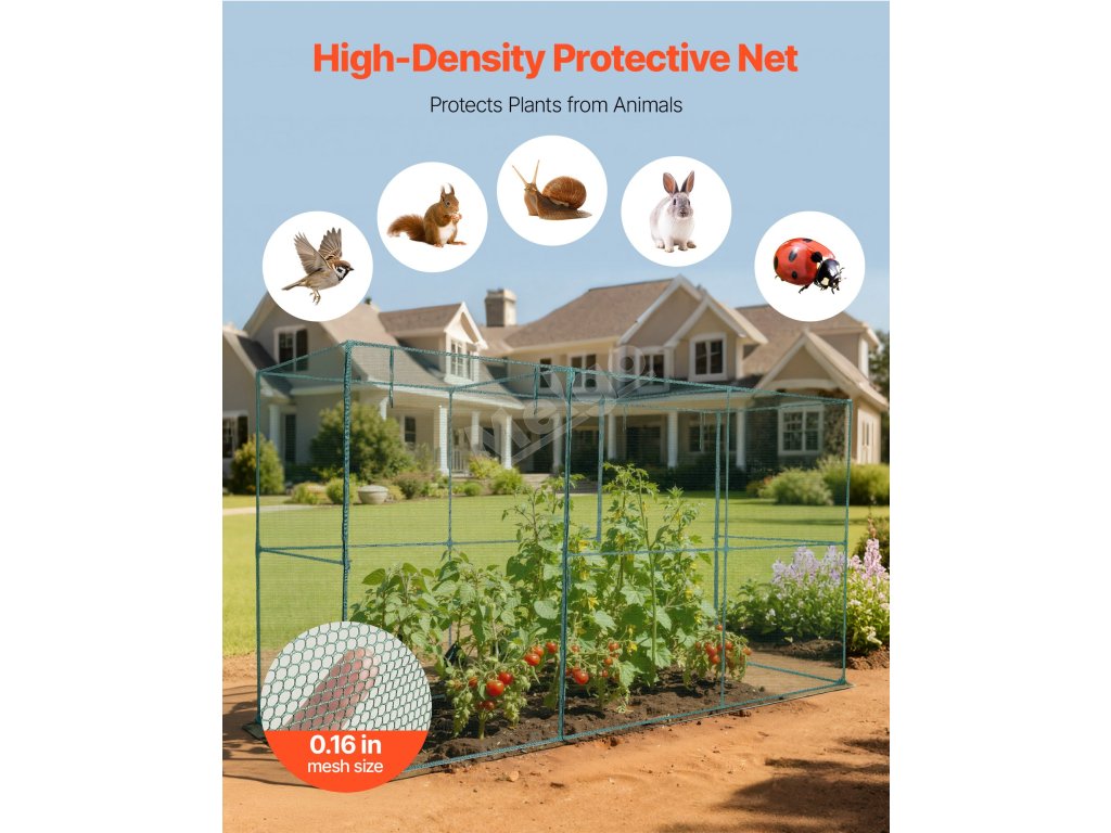 Naše klece pro zahrady jsou vyrobeny z vysoce pevných ocelových trubek a odolného polyesterového pletiva, které zajišťují stabilní konstrukci. Nejenže chrání rostliny před zvířaty, ale také zvyšují odolnost proti větru. Díky dostatečnému vnitřnímu prostoru poskytují flexibilní podmínky pro růst rostlin.