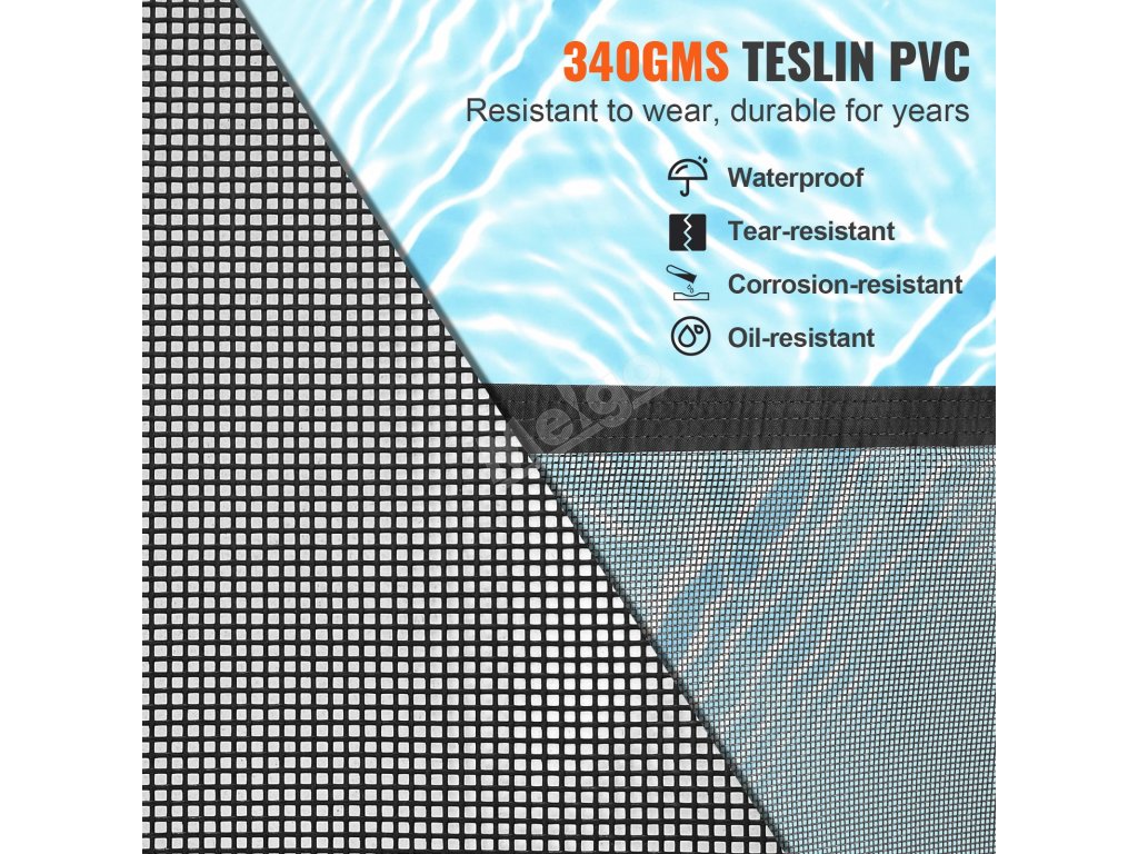 Kombinace síťoviny Teslin PVC 340 g/m2 a trojitého prošití zajišťuje vysokou odolnost proti vodě, olejům a kyselinám a zásadám, takže oplocení vašeho bazénu bude vypadat jako nové po mnoho let.