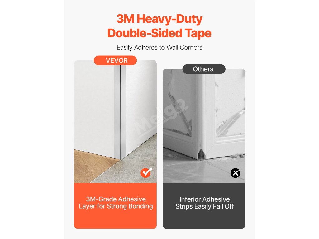 Kovové chrániče rohů používají mimořádně silné lepidlo 3M, které zajišťuje pevné a bezpečné spojení, které se neodlepuje. Jsou vyrobeny z udržitelných materiálů, lze je oddělit bez zanechání vrstvy a chrání tak povrch.