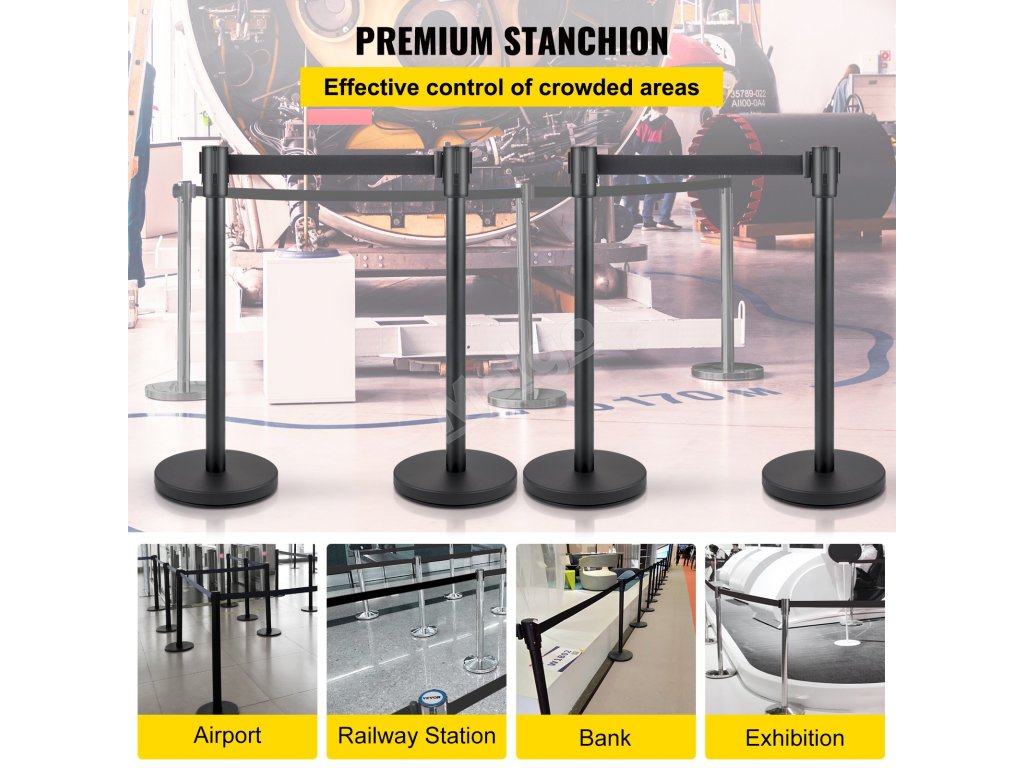 Stojany na kontrolu davu VEVOR majú elegantný a profesionálny dizajn. Celočierny štýl pôsobí elegantne a sofistikovane. Tento dizajn dodá klasický nádych každej príležitosti. Výsuvné pásy sú tiež čierne, čím sa zachováva elegantný vzhľad. Tieto stojany sa bez problémov začlenia do profesionálneho prostredia. Dobre sa hodia na podujatia, pri ktorých záleží na vzhľade. Profesionálny dizajn zaručuje, že zapadnú do akéhokoľvek interiéru. Vylepšite vzhľad svojej udalosti týmito štýlovými stojanmi. Získajte funkčnosť aj eleganciu v jednom výrobku.