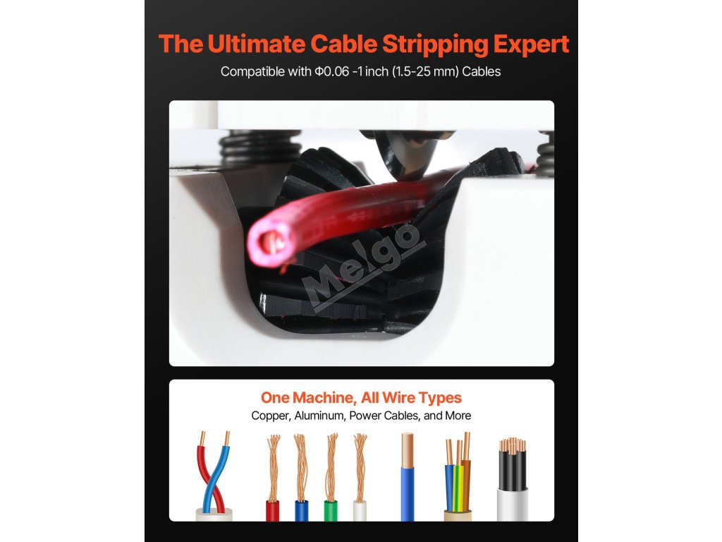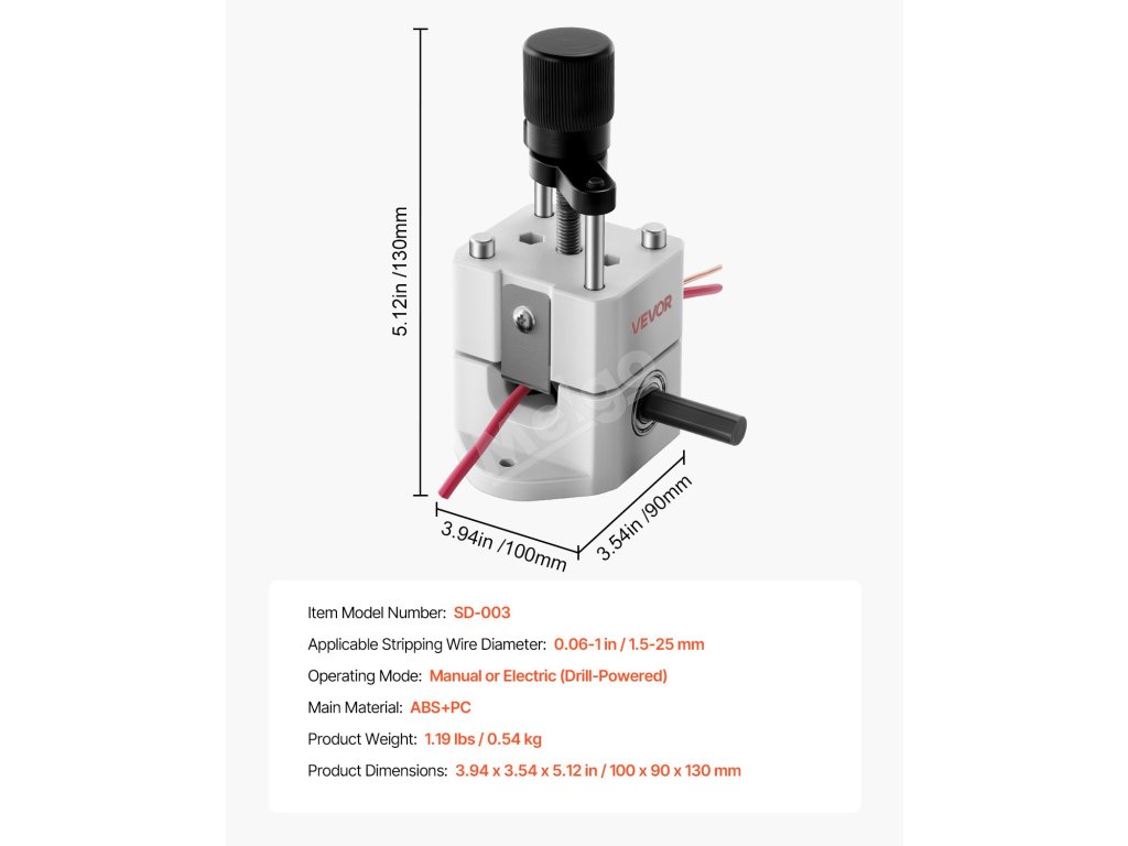 Tento kompaktní stroj o velikosti dlaně dospělého člověka vám umožní odizolovat kabely kdekoli potřebujete. Ruční klika pro snadné ovládání. Pro rychlejší výsledky jej jednoduše připojte k elektrické vrtačce. Poradí si s kabely o průměru od 0,06 do 1 palce, ideální pro měď, hliník atd.