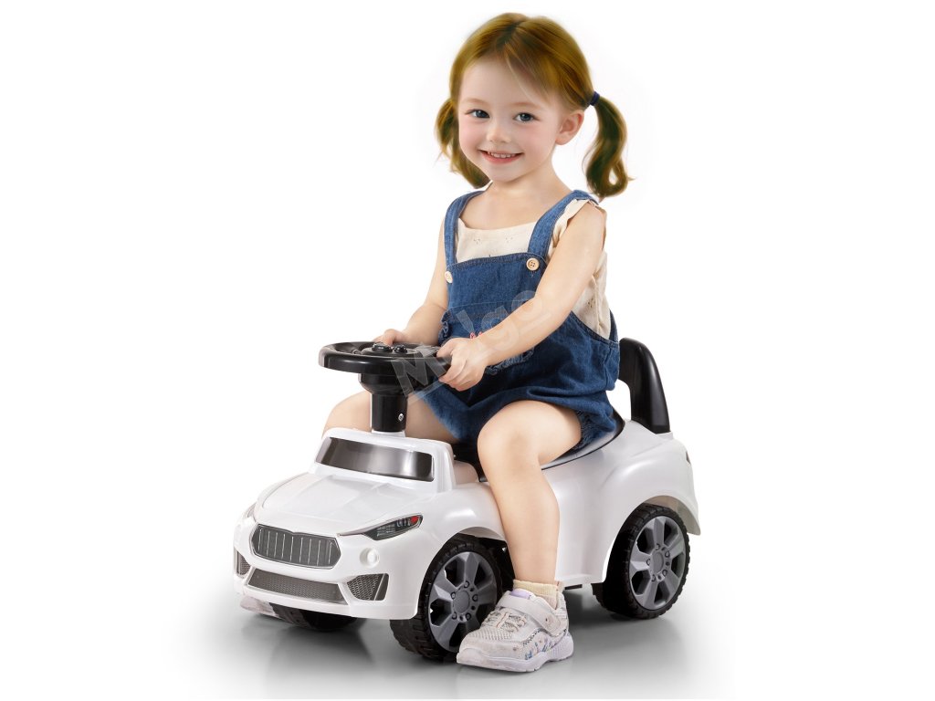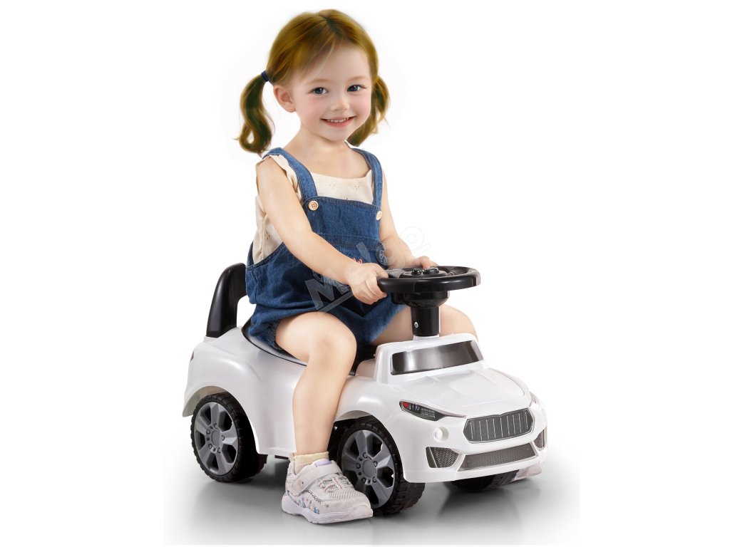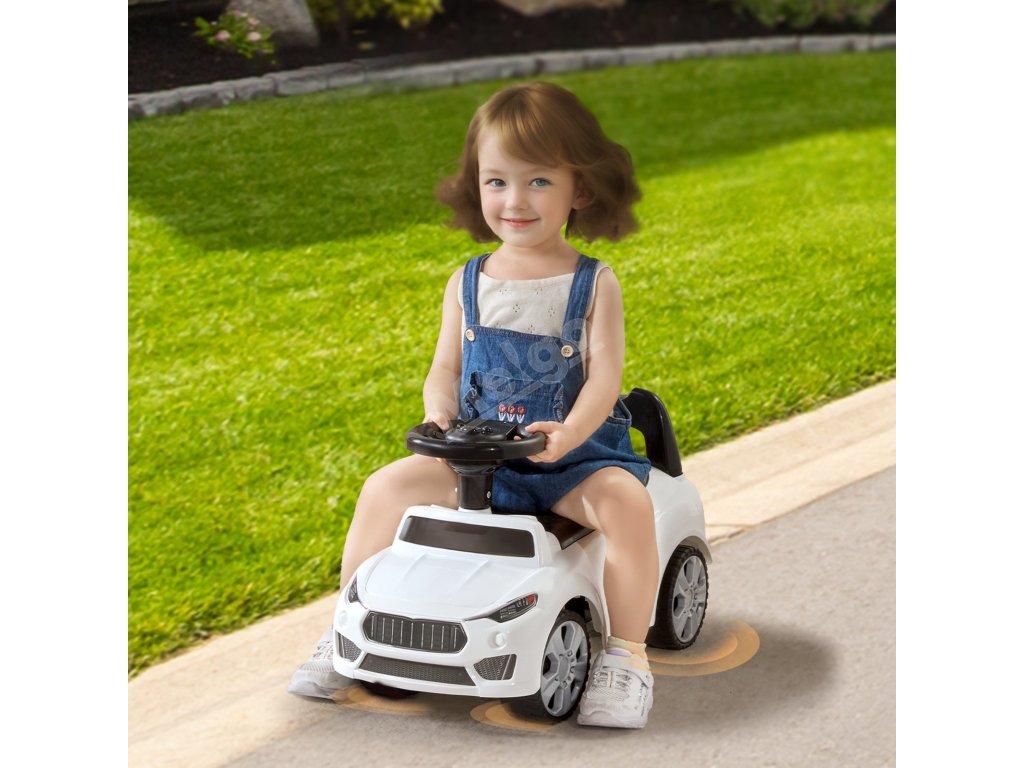 Odrážedlo pro děti 1-3 roky, hudební volant, úložný prostor, bílé