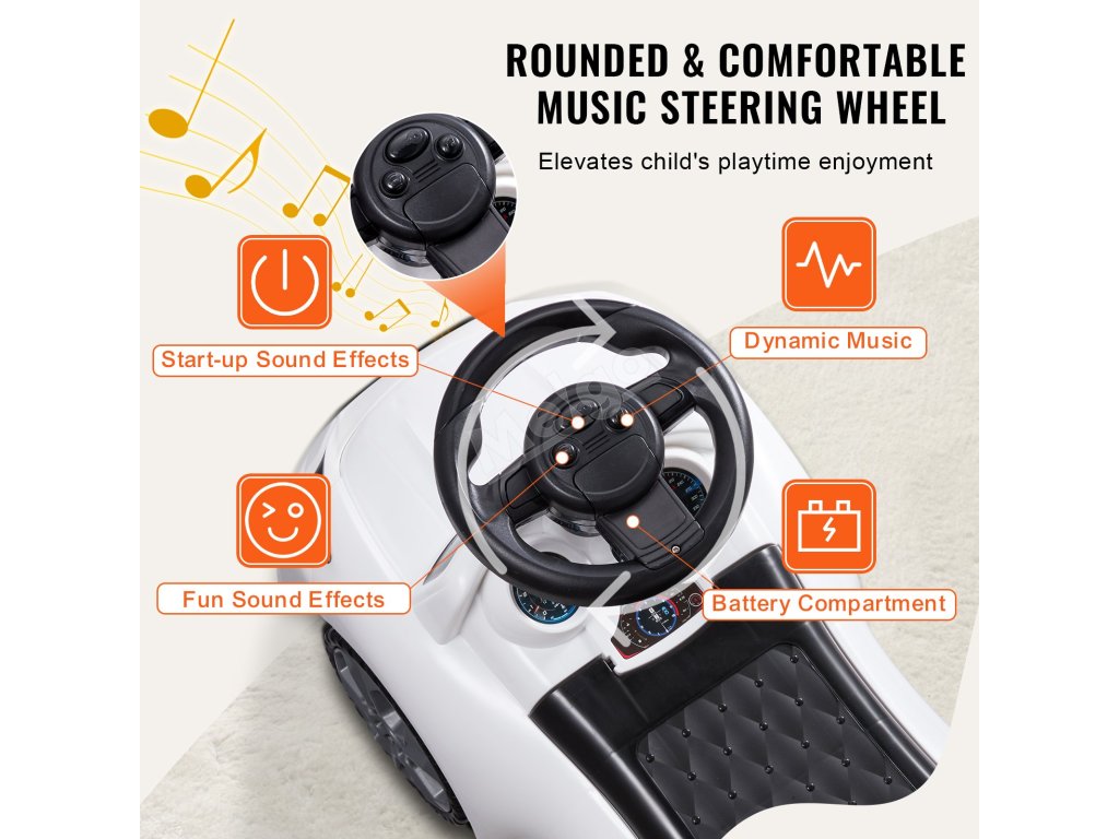 Volant autíčka pro batolata je vybaven tlačítkem pro přehrávání veselých melodií, které vašemu dítěti zpříjemní jízdu. Hladký design bez otřepů zaručuje, že nepoškrábe jemnou pokožku vašeho dítěte.