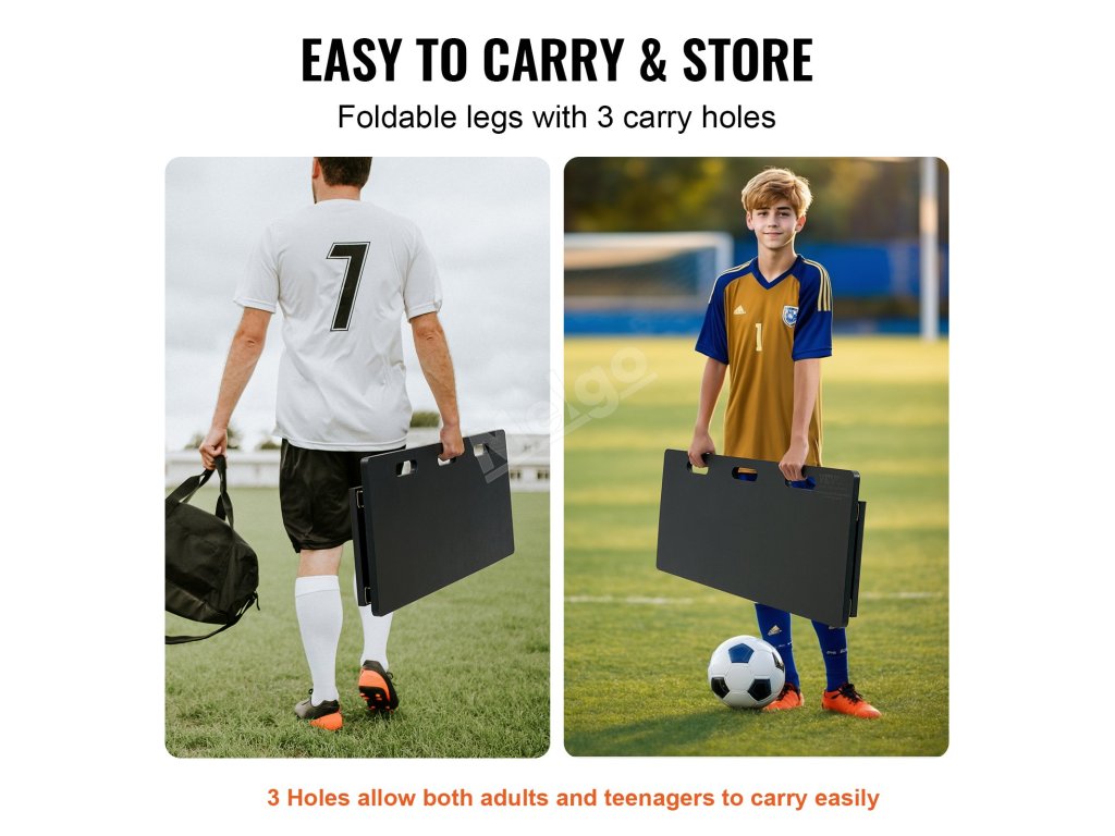 3 otvory pro přenášení navržené pro snadné přenášení. Naše přenosná fotbalová stěna je díky svému pohodlnému designu vhodná pro dospělé i teenagery.