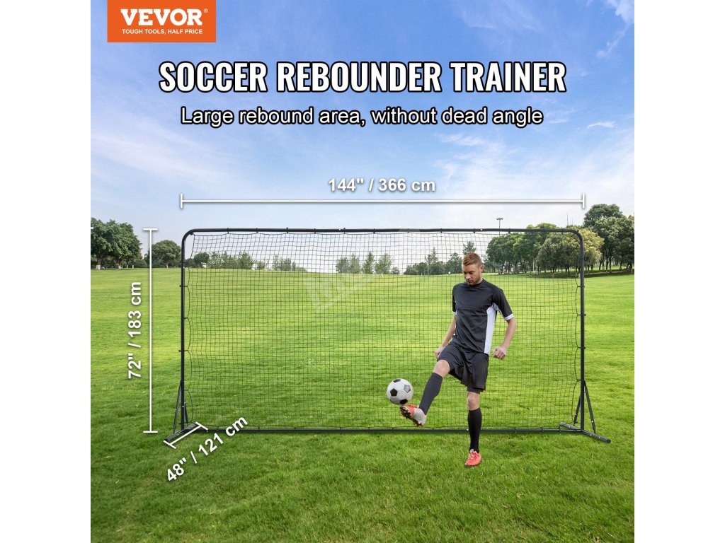 Odrazová síť na fotbal 12×6FT, kovová konstrukce, s přepravní taškou