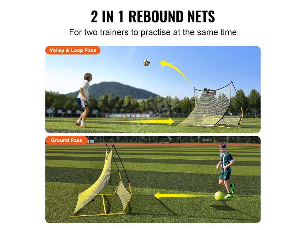 Odrazová síť na fotbal 2v1 přenosná 182.9×129.5 cm kovová s taškou