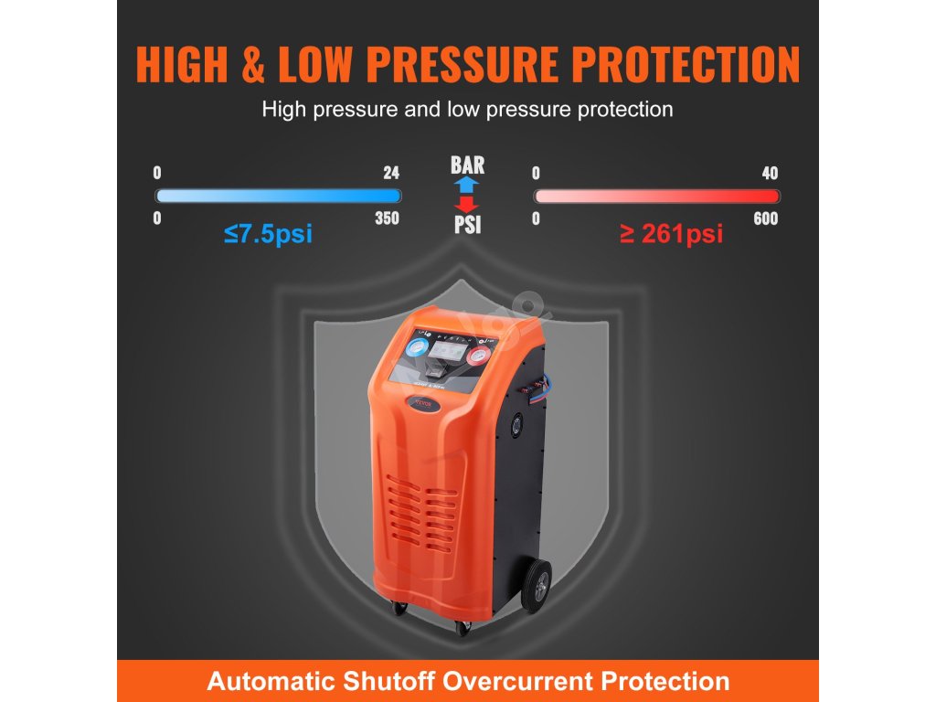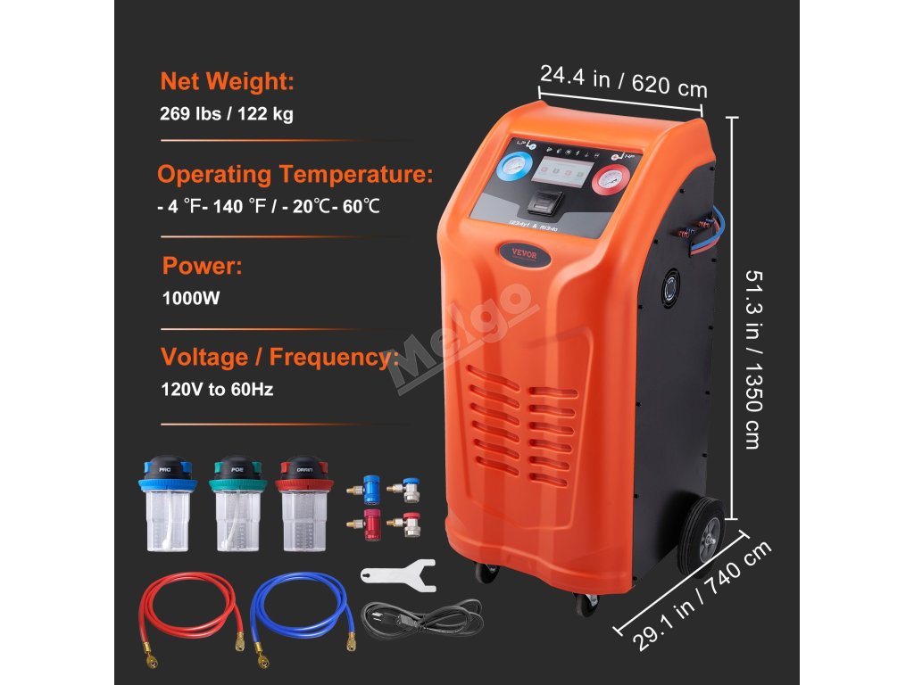 Je vybaven třemi těsně uzavřenými lahvemi na olej, které snadno neprotékají, a stupnice na lahvi pomáhá přesně plnit olej PAG a POE.