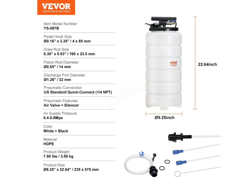 Tento odsavač kapalin pracuje jak ručně, tak pneumaticky. Pneumatický režim proces urychluje, zatímco manuální režim je jednoduchý a nepotřebuje další vybavení.
