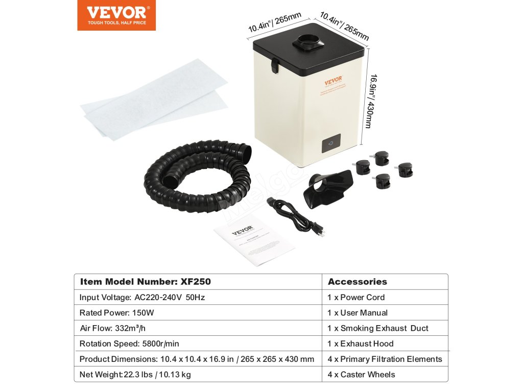 Představujeme vám odsavač pájecích dýmů VEVOR, který je navržen tak, aby zlepšil váš zážitek z pájení. Díky výkonnému 150W motoru a silnému průtoku vzduchu 332 m³/h dokáže rychle odstranit kouř a škodlivé částice. 3stupňový filtrační systém a 99,99% míra čištění zajistí, že váš pracovní prostor zůstane čistý, bezpečný a zdravý.