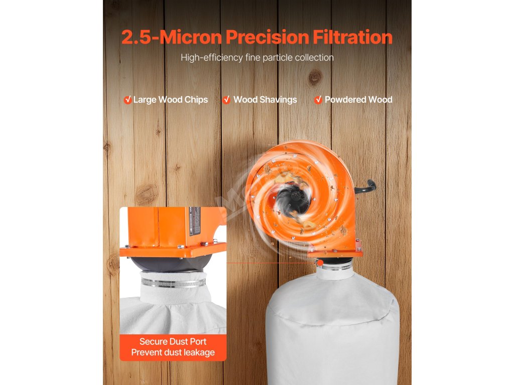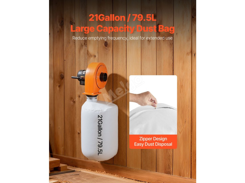 Náš 21galonový (80l) vysavač prachu poskytuje výkonné odsávání 560CFM s 1HP bezkartáčovým motorem a 2,5mikronovým přesným filtrem. Jeho nástěnná konstrukce šetří místo, zatímco průhledné okno a spodní zip umožňují snadnou a efektivní manipulaci s prachem při práci se dřevem.