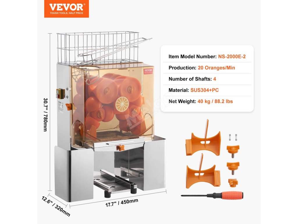 Náš komerční odšťavňovač pomerančů, vyrobený z vysoce kvalitní potravinářské nerezové oceli SUS304 a materiálu PC, zaručuje špičkový výkon. Účinně získává šťávu z pomerančů a zároveň bezproblémově kombinuje automatické loupání a automatické filtrování. Vychutnejte si čistou čerstvou šťávu bez přídavných látek.