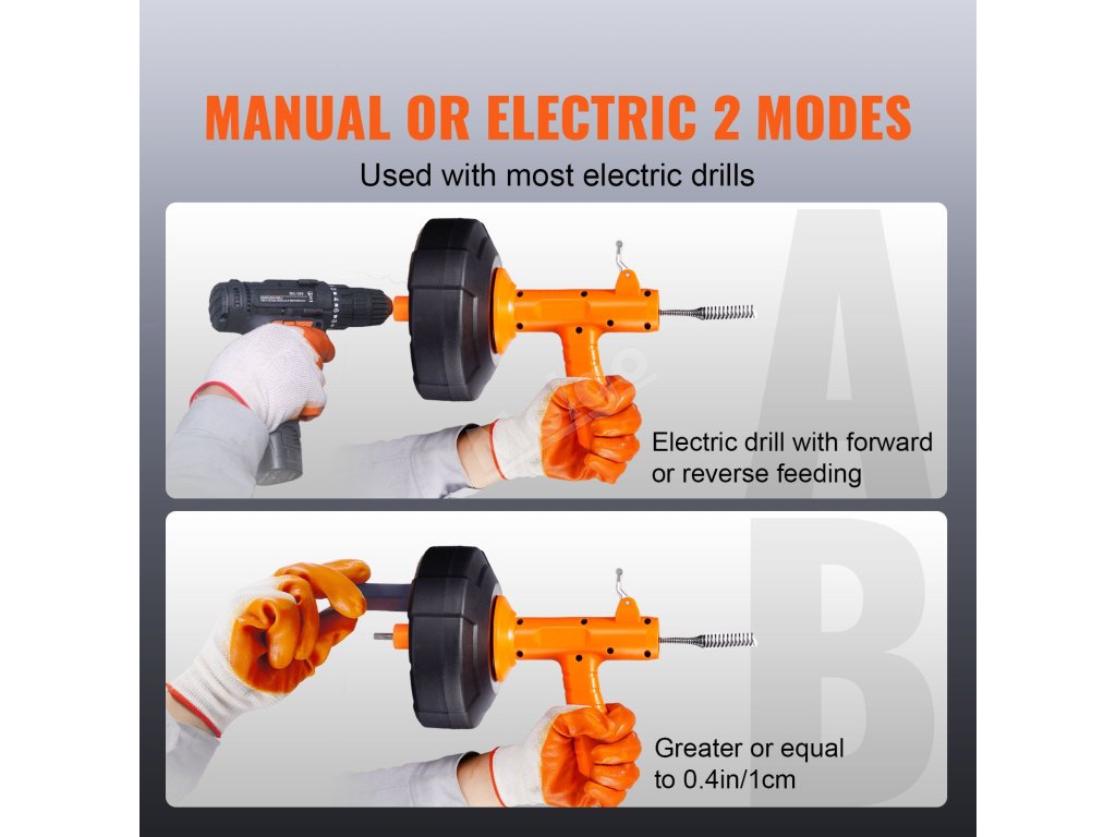 Odtokový šnek VEVOR má automatický podávací mechanizmus, ktorý uľahčuje jeho používanie. Znižuje potrebu manuálnej práce. Šnek sa sám podáva do odtoku, čo vám umožňuje sústrediť sa na iné aspekty čistiaceho procesu. Toto pohodlie je prístupné ľuďom všetkých úrovní zručností, od domácich majstrov až po profesionálnych inštalatérov. Náš automatický podávač zabezpečuje, že nástroj pracuje efektívne bez plytvania časom a energiou. Je to teda praktické riešenie pre tých, ktorí chcú mať odpad bez upchatia.