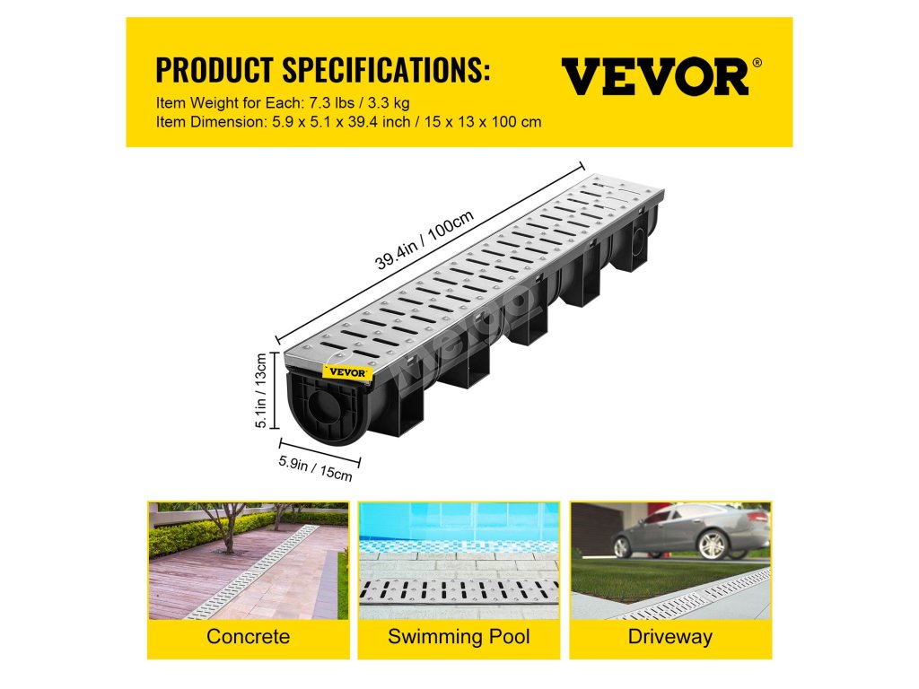 Ak je vaša odpoveď veľké áno, odtokový systém VEVOR bude skvelou voľbou. Jeho dizajn a farba ladia s každým priestorom a menia jeho celkový vzhľad. Takže, či už ide o komerčný priestor, príjazdovú cestu k obytnému domu alebo verejný park, tento odtokový kanál si zachová svoj vzhľad. Objednajte si teda odtokový kanál do priekopy ešte dnes a bez námahy si poradíte s vodou a zároveň zachováte vzhľad vašej plochy.