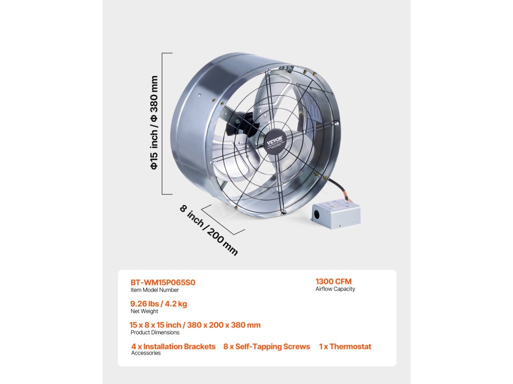 Odvětrávací štítový ventilátor 15 inch 1300CFM 1850 Sq.Ft pozinkovaný