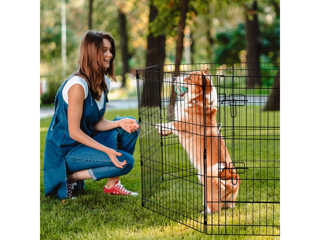 Ohrádka pro psy a malá zvířata 8 dílů 30"H×24"W kovová s dvířky