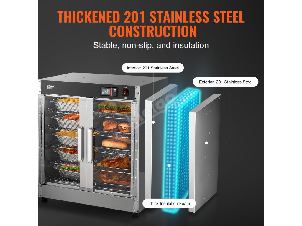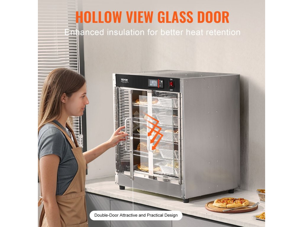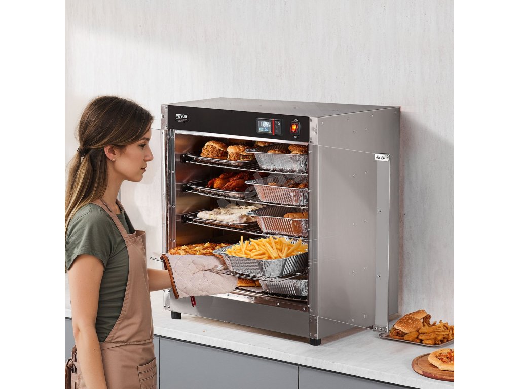 Naše ohřívací skříň zajišťuje stálou teplotu, udržuje jídlo teplé a čerstvé, aniž by se vysušilo, takže vaše chutné jídlo vypadá jako čerstvě uvařené.