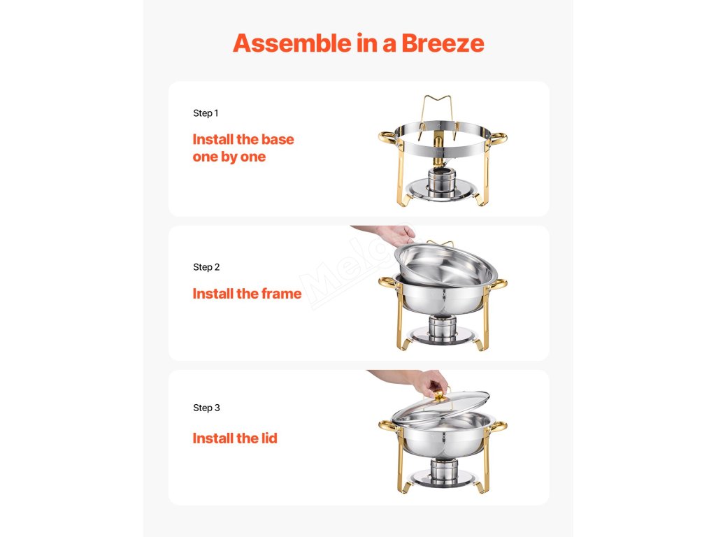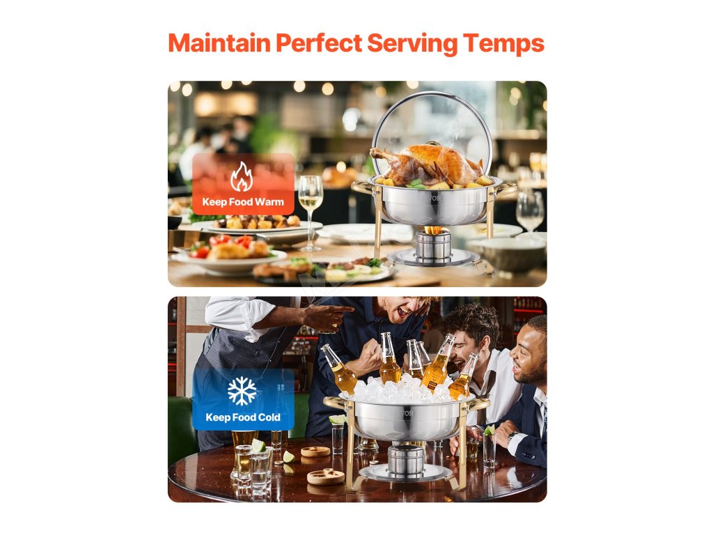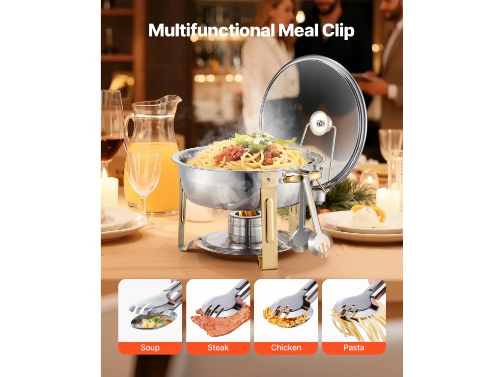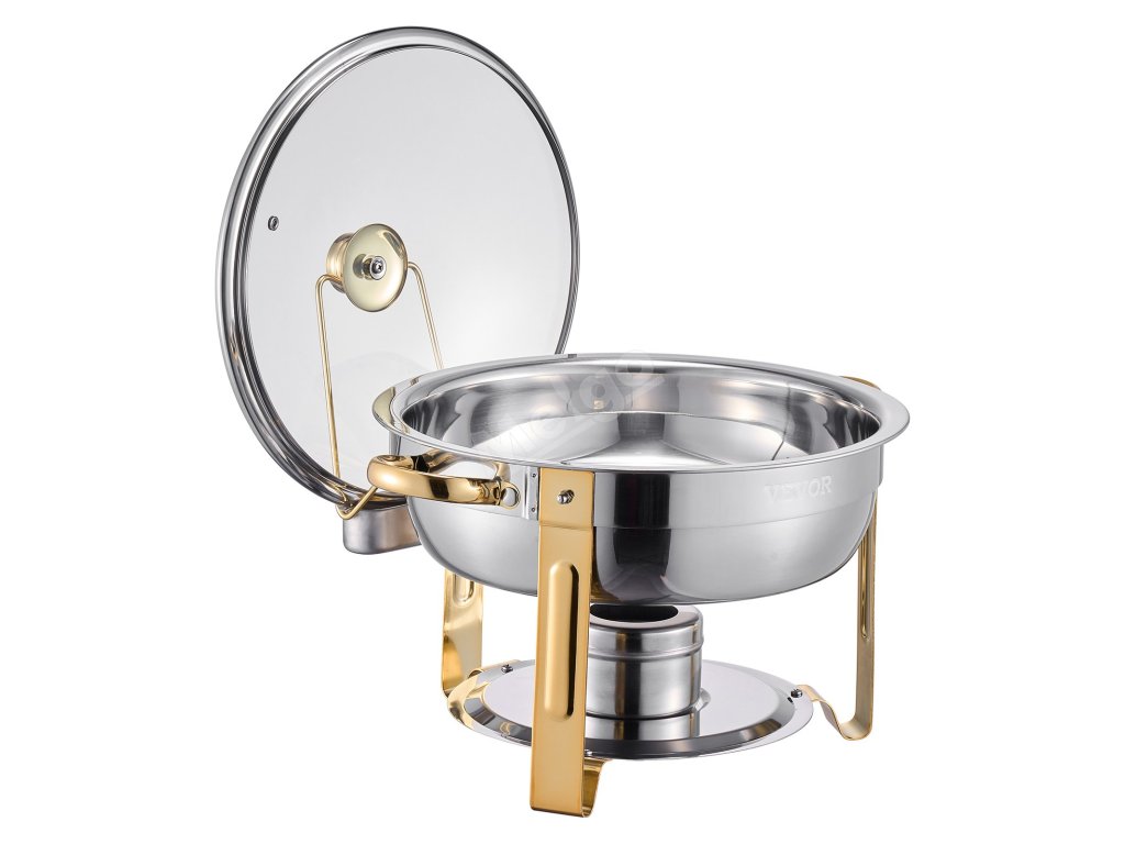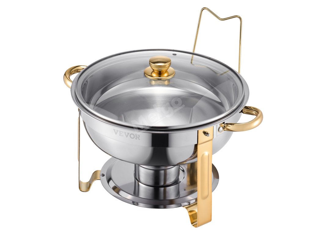 Ohřevný bufetový set 4 ks, 5 Qt, nerez, 4 pánve, skleněné víko, zlatá
