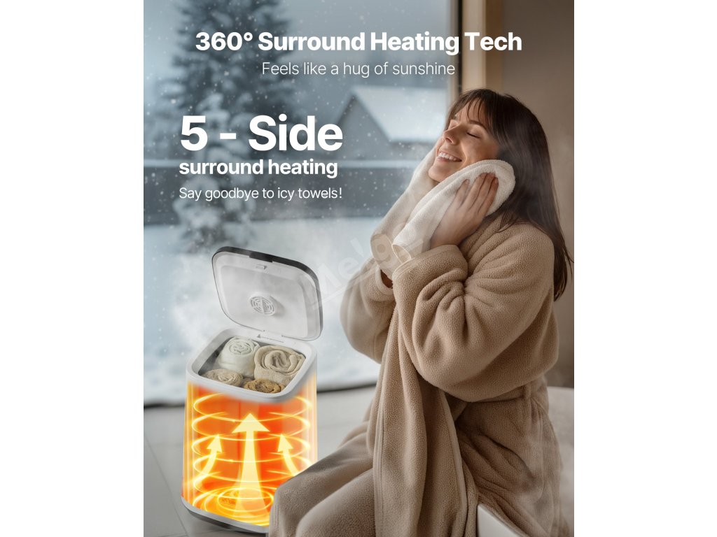 Kbelík na ohřívání ručníků je navržen s topnými dráty na dně a na stěnách, které rovnoměrně zvyšují teplotu, takže ručníky jsou měkčí a teplejší bez studených míst. Po koupeli nebo relaxaci ve vaně si můžete užívat pohodlí zabalení do teplého ručníku.