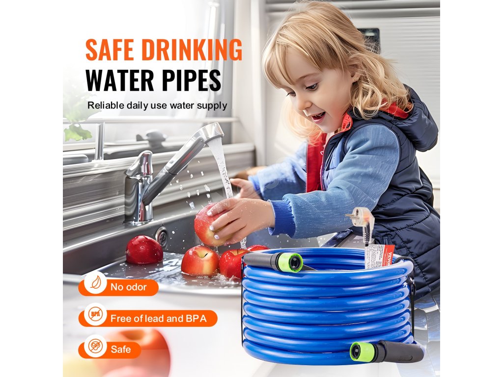Vnitřní hadice z PVC je bezpečná pro pitnou vodu, neobsahuje olovo ani BPA a udržuje vodu čistou pro pití, koupání i zalévání rostlin.
