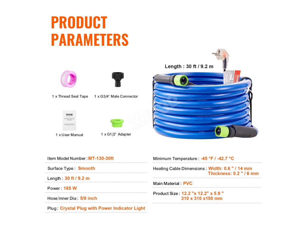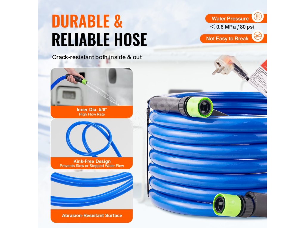 Během zimních nocí ve většině regionů běžné hadice kvůli nízkým teplotám zamrzají. S vyhřívanou hadicí na vodu VEVOR pro obytné vozy si můžete při kempování v obytném voze užívat běžného používání vody i při teplotách až -45 °C.