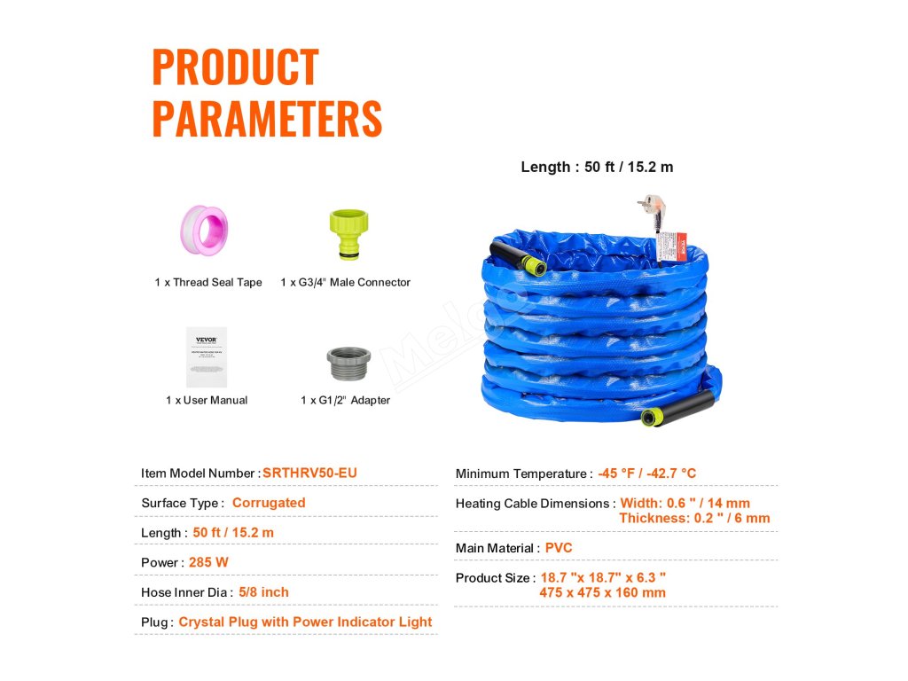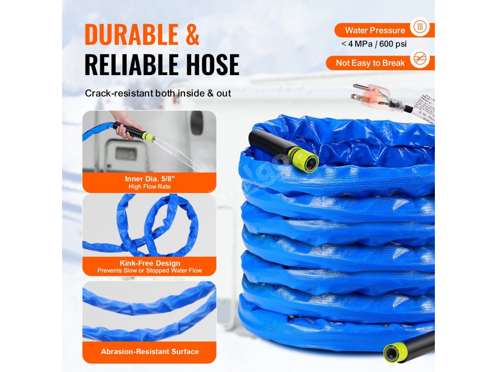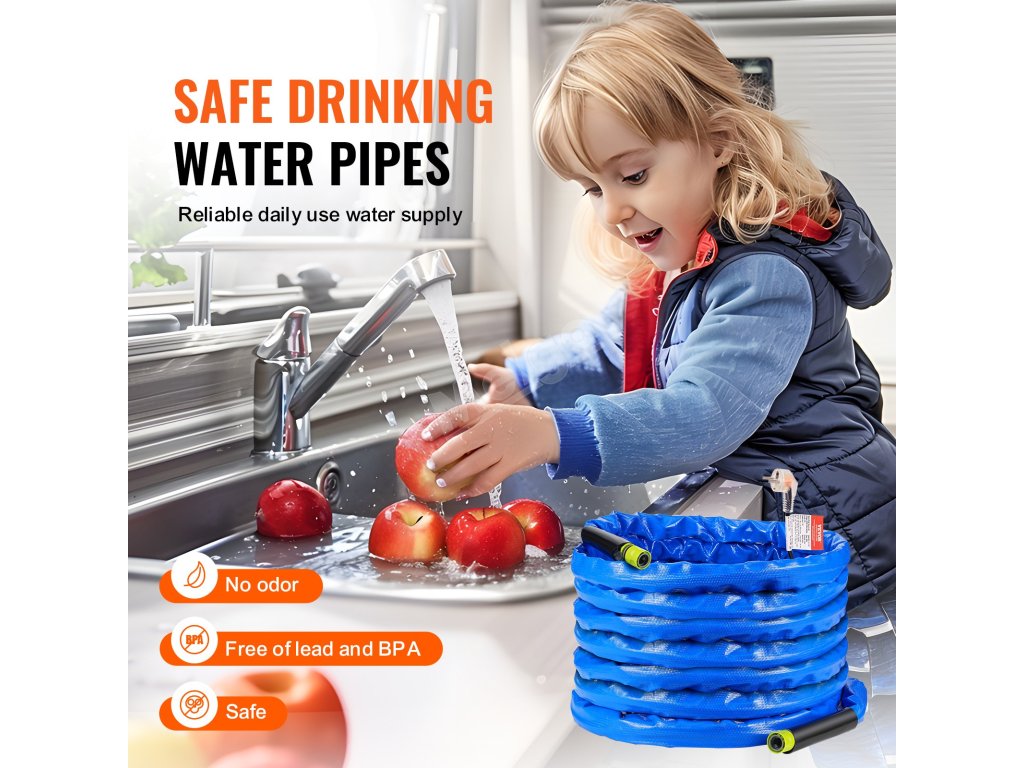 Během zimních nocí ve většině regionů běžné hadice kvůli nízkým teplotám zamrzají. S vyhřívanou hadicí na vodu VEVOR pro obytné vozy si můžete při kempování v obytném voze užívat běžného používání vody i při teplotách až -45 °C.