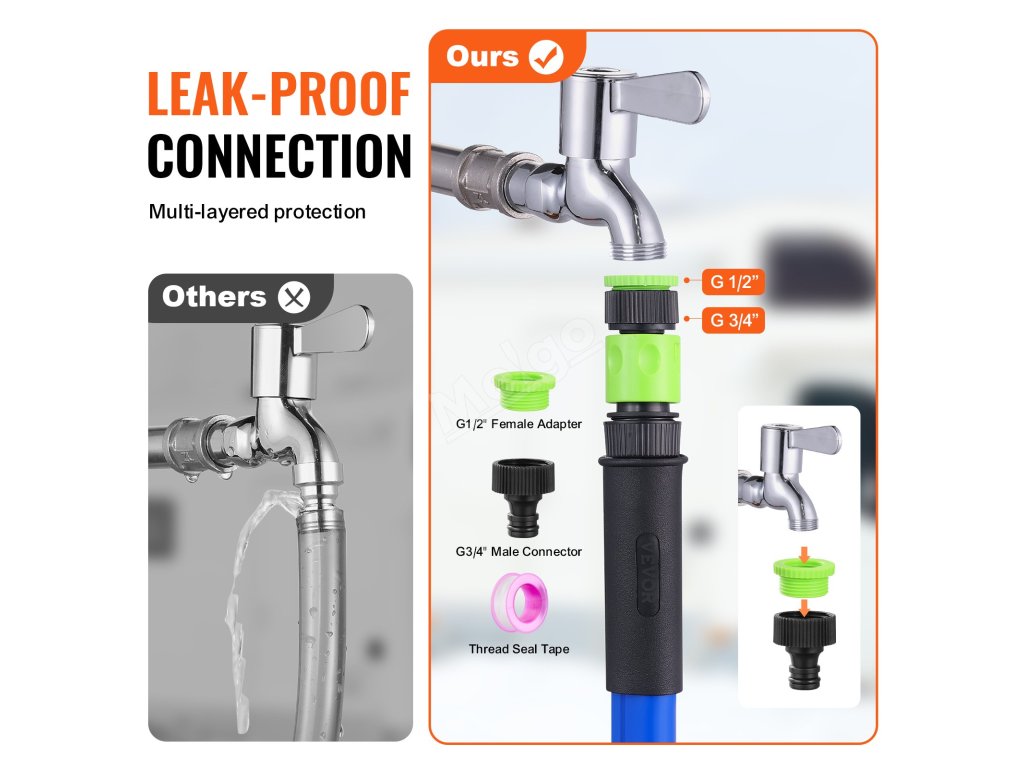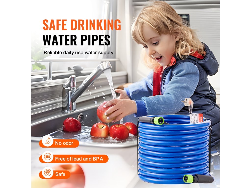 Vnitřní hadice z PVC je bezpečná pro pitnou vodu, neobsahuje olovo ani BPA a udržuje vodu čistou pro pití, koupání i zalévání rostlin.