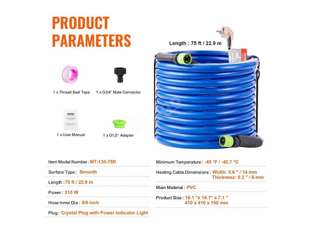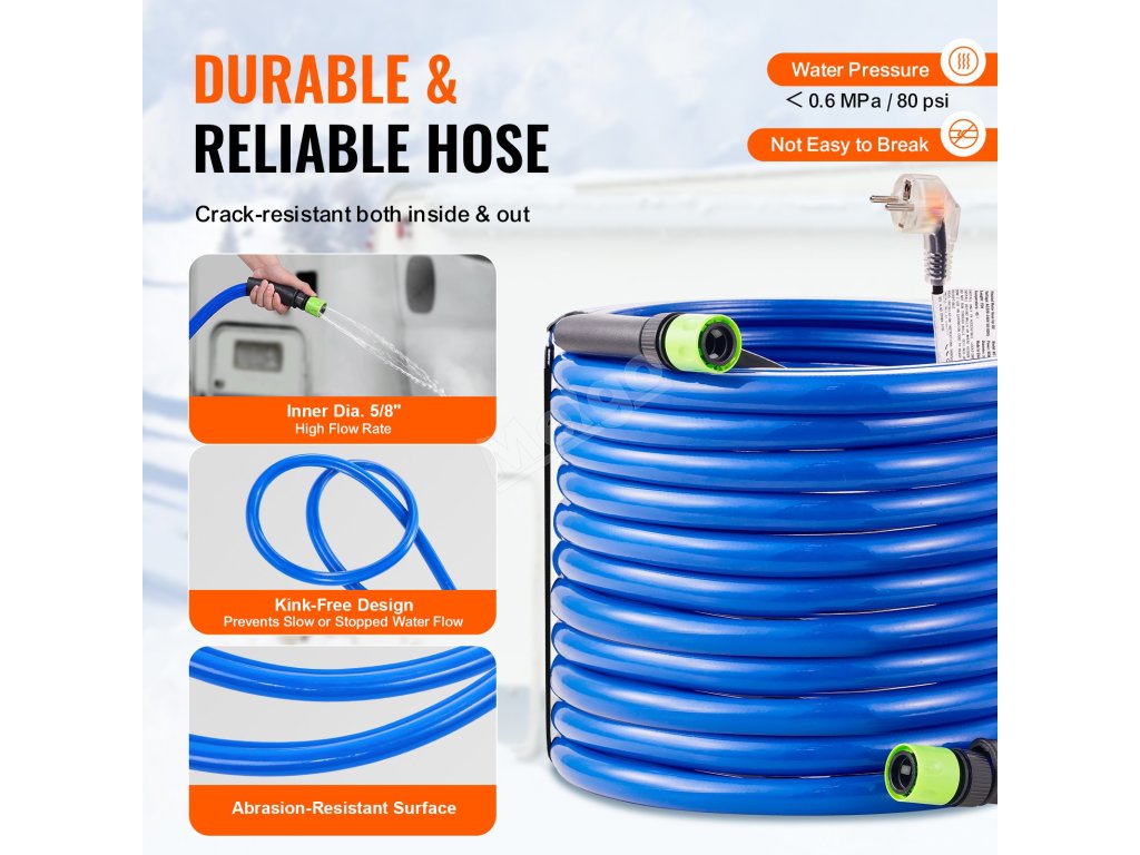 Během zimních nocí ve většině regionů běžné hadice kvůli nízkým teplotám zamrzají. S vyhřívanou hadicí na vodu VEVOR pro obytné vozy si můžete při kempování v obytném voze užívat běžného používání vody i při teplotách až -45 °C.