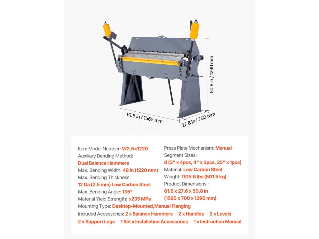 Ohýbejte kov jako profesionál s touto 48palcovou brzdou na plech. Skříňová a pánvová brzda je ideální pro dílny, zvládá 12-ti vrstvou ocel, podporuje více materiálů a je vybavena modulárními prsty pro složité ohyby - snadno se používá, je stabilní a navržená pro přesné ohýbání.
