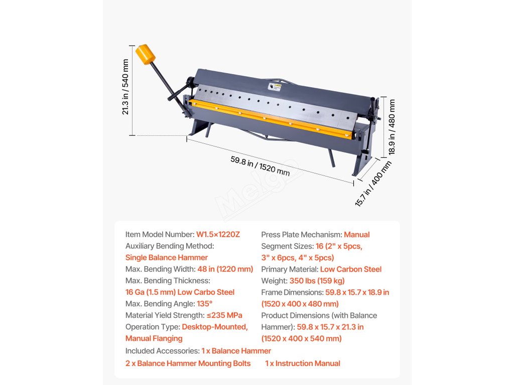 | Max. Šířka ohybu | 48 palců (1220 mm) |