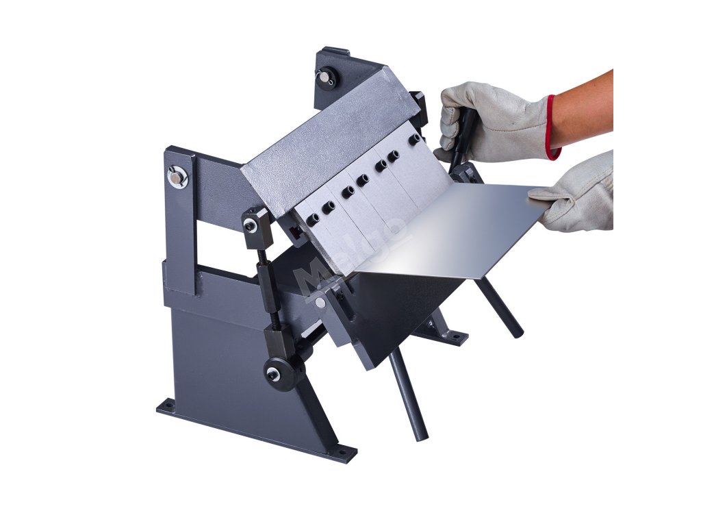 Před obsluhou ohýbačky kovů vždy používejte ochranné brýle, protiskluzové rukavice a bezpečnostní obuv. Při ohýbání stůjte stranou, abyste se vyhnuli zranění způsobenému zpětným rázem. Při ohýbání větších plechů se pro bezpečnou manipulaci spojte s partnerem.