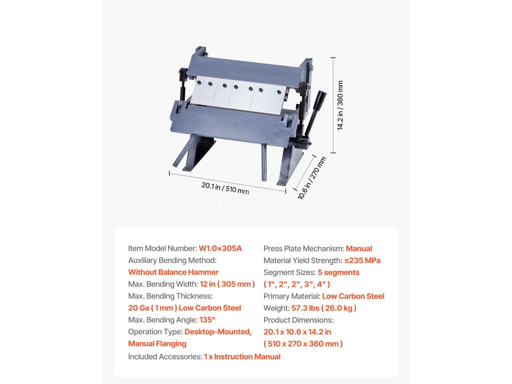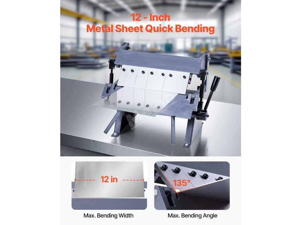 Ohýbejte kov jako profesionál s touto 12palcovou brzdou na plech. Skříňová a pánvová brzda je ideální do dílen, zvládá 20 mm silnou ocel, podporuje více materiálů a je vybavena modulárními prsty pro složité ohyby - snadno se používá, je stabilní a navržená pro přesné ohýbání.
