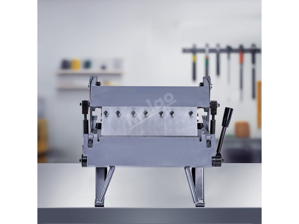 Připevněte ohýbačku ocelových plechů k pracovnímu stolu pomocí šroubů, abyste zabránili posunu a zajistili stabilní a přesné ohyby.