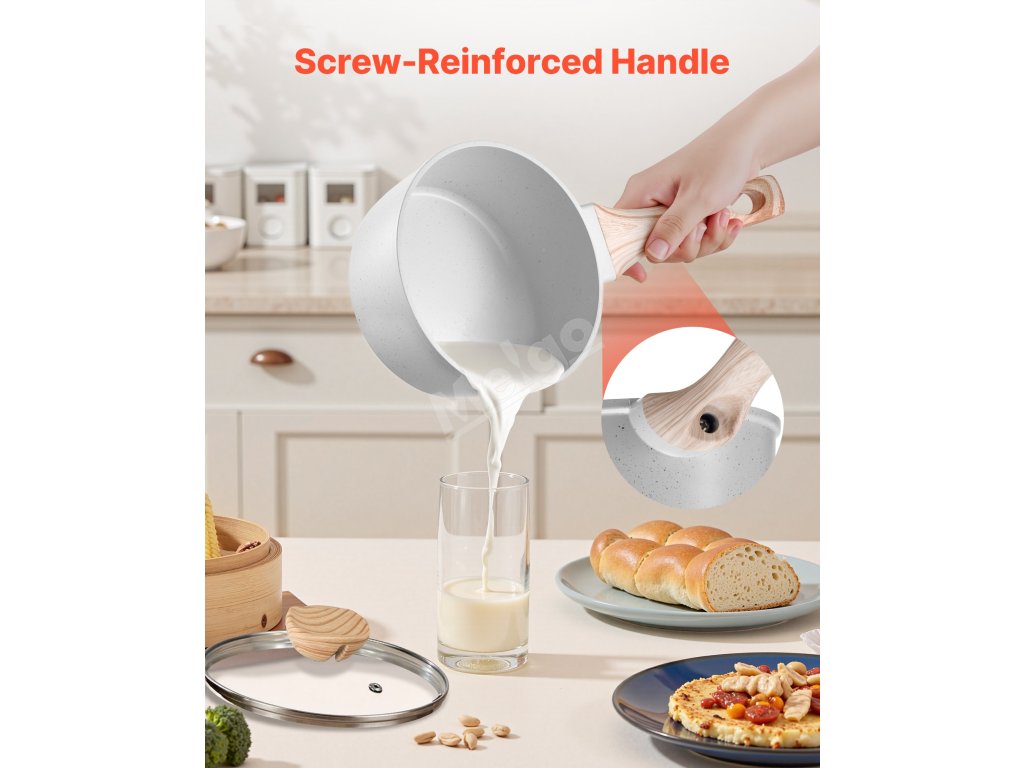 Náš hrnec na omáčku je vybaven mramorovým nepřilnavým povrchem, který umožňuje rovnoměrné vaření bez připalování - i s minimálním množstvím oleje. Ideální pro bezpečné vaření, díky kterému bude každé jídlo chutné.