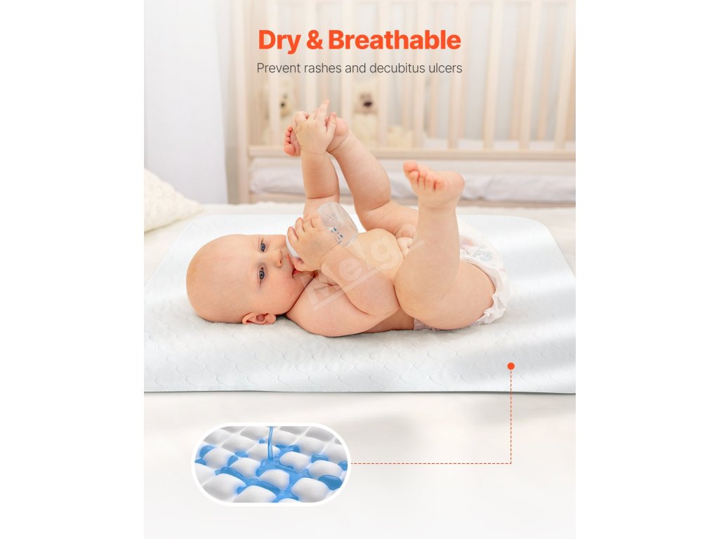 Tato opakovaně použitelná podložka do postele je vyrobena z materiálů bez obsahu latexu a poskytuje bezpečný a pohodlný zážitek se sníženým rizikem alergií. Její prošívaný design uzavírá tekutinu a zabraňuje prosakování na okrajích, přičemž nabízí trvanlivost a odolnost proti roztržení pro dlouhodobé používání.
