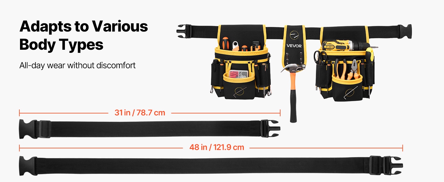 Tento prodloužený a zesílený opasek na nářadí pro tesaře má ergonomicky navržený opasek s nastavitelnými přezkami, které rovnoměrně rozkládají hmotnost a snižují zátěž po dlouhých hodinách práce. Zůstaňte v pohodlí bez tlaku a otlaků v pase po celý den.