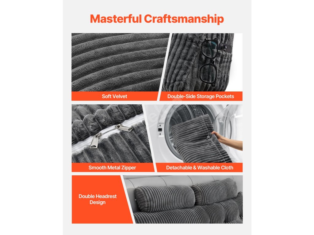 Opěrka čela postele king size, 2 boční kapsy, pratelný flanel