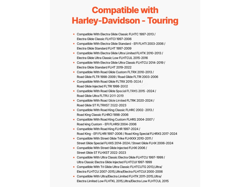 Naše odnímatelné opěradlo jezdce je kompatibilní s modelem Harley-Davidson Touring. Obsahuje potřebnou sadu dokovacího hardwaru. Před nákupem si prosím ověřte svůj model a rok výroby.