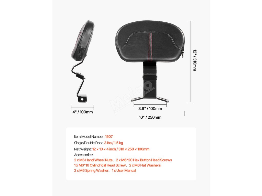 Tento motocyklový sissy bar je kompatibilní s motocykly Harley a umožňuje rychlou instalaci a demontáž. Obsahuje podrobný návod k instalaci, který zaručuje bezproblémové nastavení během několika sekund.