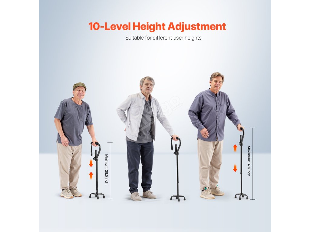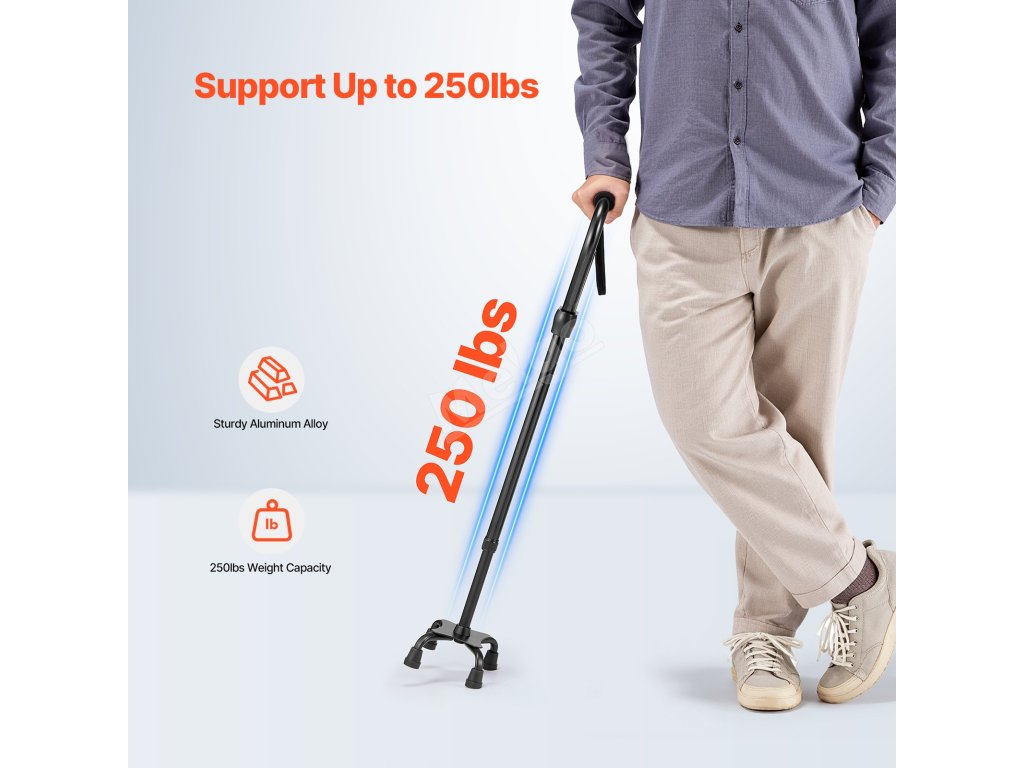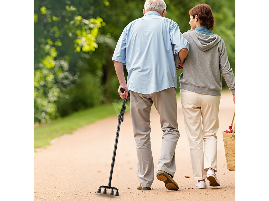 Opěrná hůl se 4-nohou základnou, hliník, lehká, 10 poloh, 250LBS