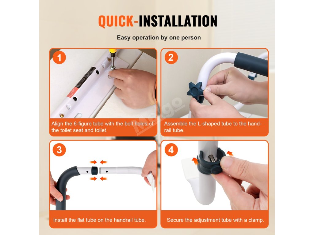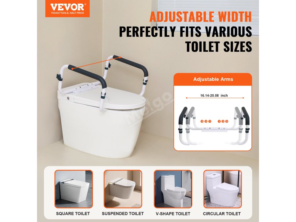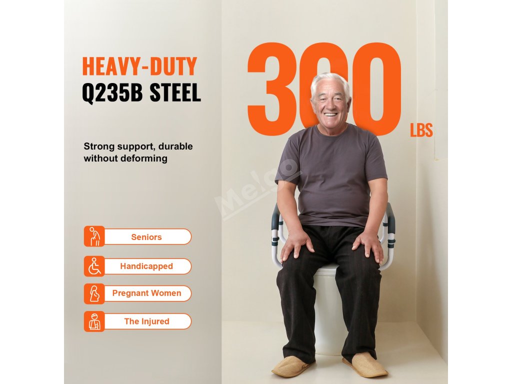Opěrný rám na wc sedátko, nosnost 300LBS, nastavitelná šířka, držadla