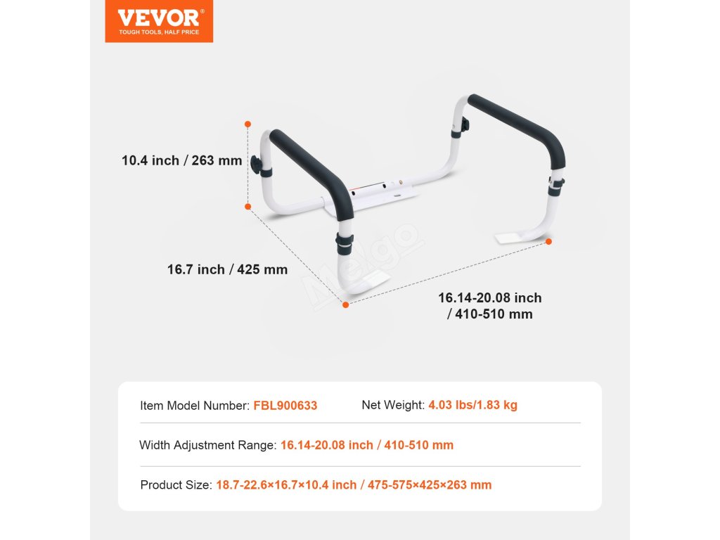 Toaletní madlo má 3 nastavení šířky (16,14 - 20,08 palce) s flexibilním nastavením pomocí pružiny. To umožňuje snadné nastavení velikosti, díky čemuž je bezpečnostní rám toalety vhodný pro různé velikosti toalet a poskytuje uživatelům pohodlné používání.