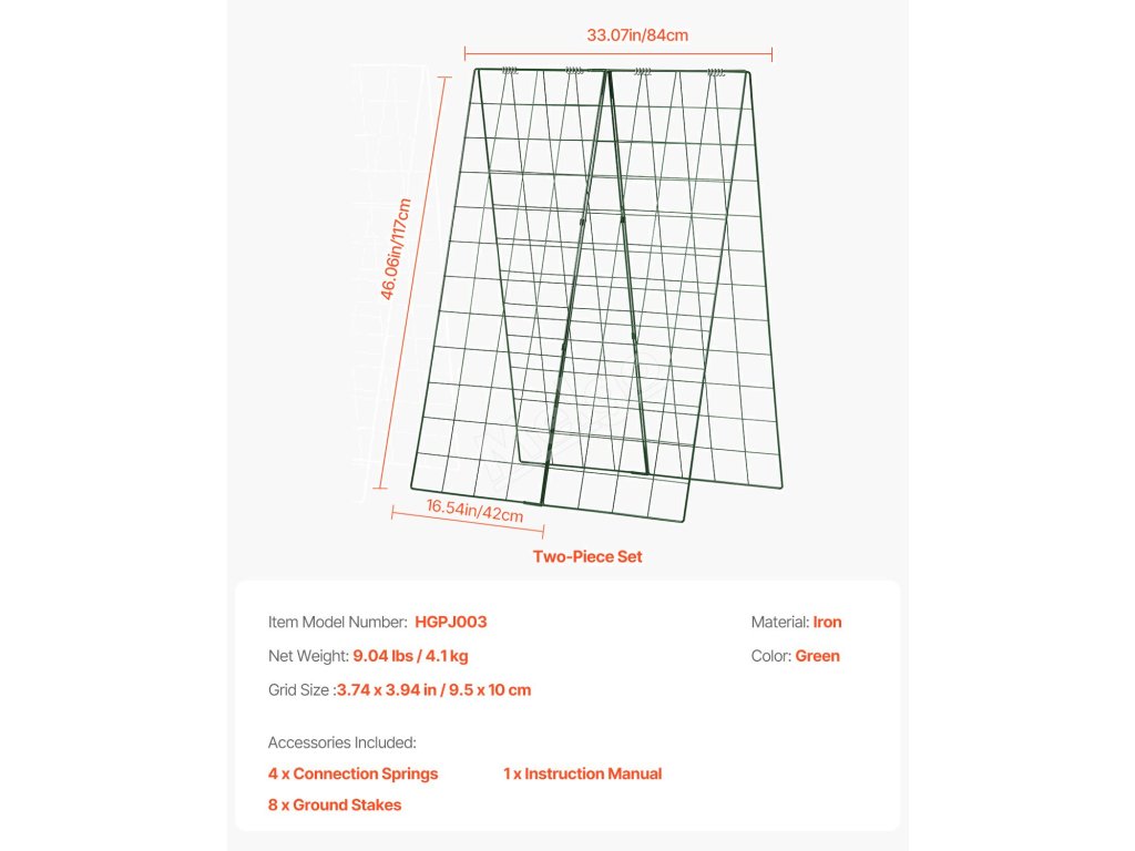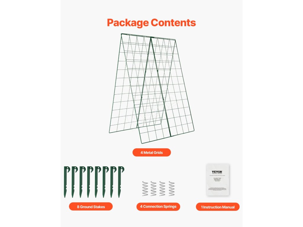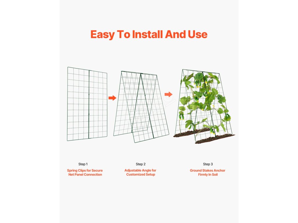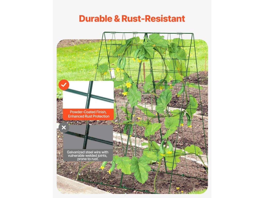 Tato mřížka na okurky je vyrobena z odolného kovového rámu s antikorozní povrchovou úpravou a je pevná a odolná vůči korozi a větru. Nevyžaduje žádné nářadí. Nastavení jednou osobou! Ideální pro okurky a další popínavé rostliny, zlepšuje proudění vzduchu, podporuje růst pro bohatou úrodu.