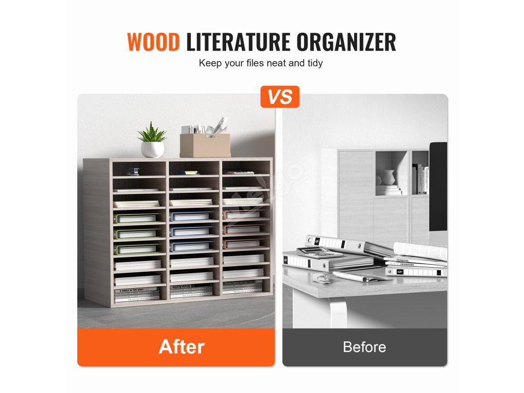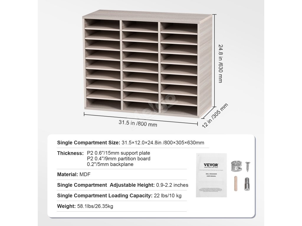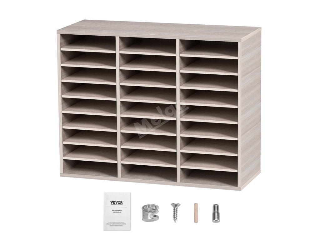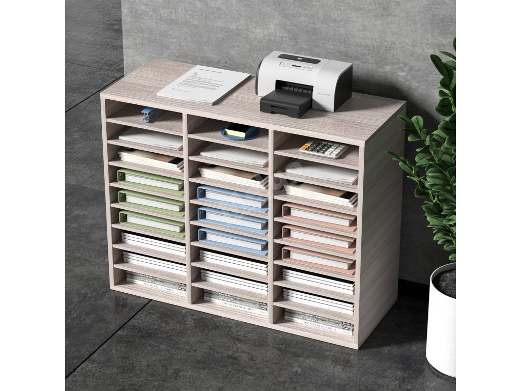 Organizér na dokumenty 27 přihrádek, nastavitelné police, mdf, šedý