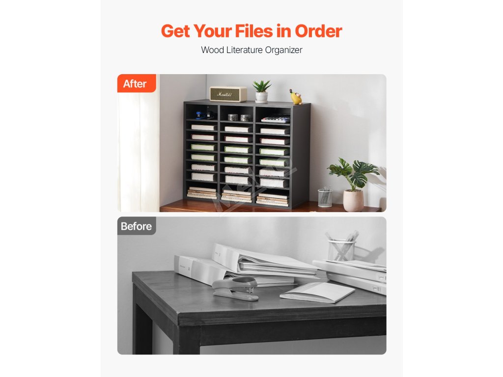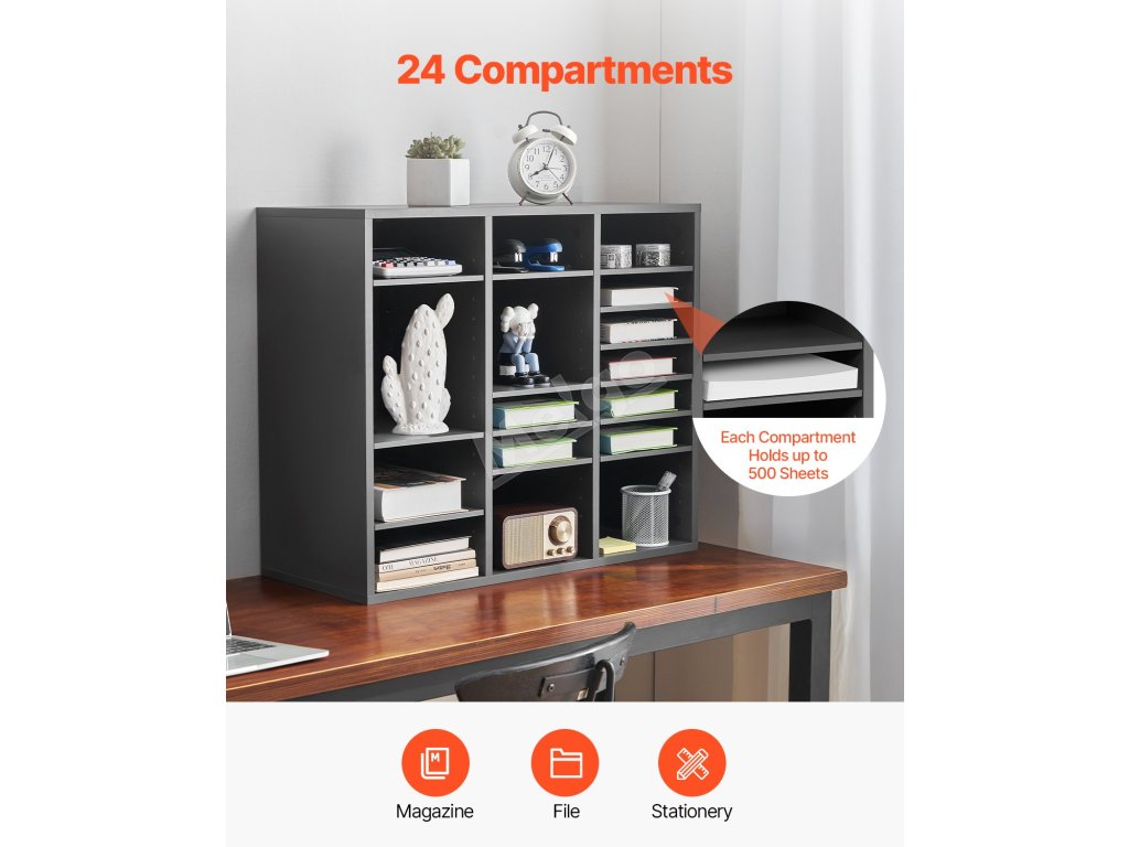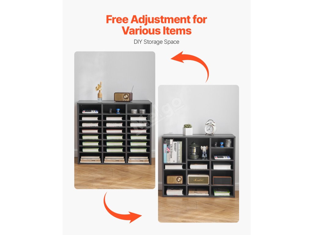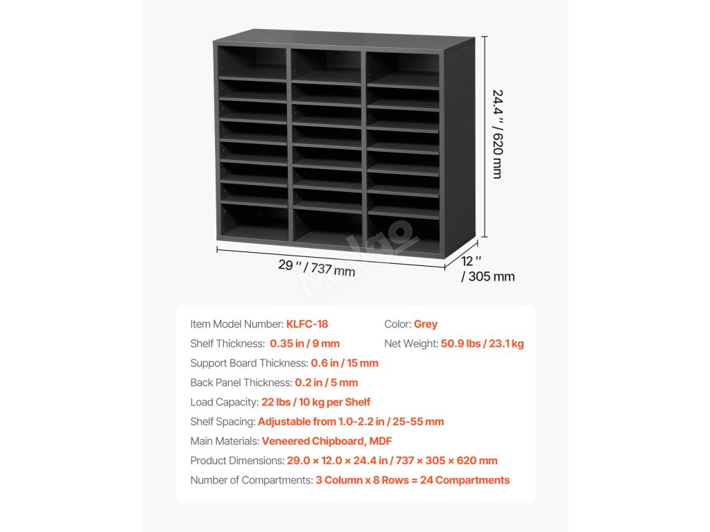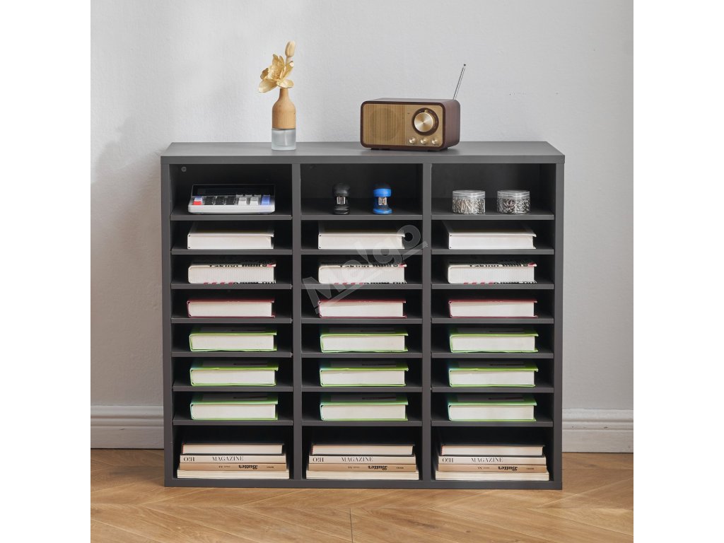 Organizér na dokumenty z mdf, 24 přihrádek, nastavitelné police, šedý