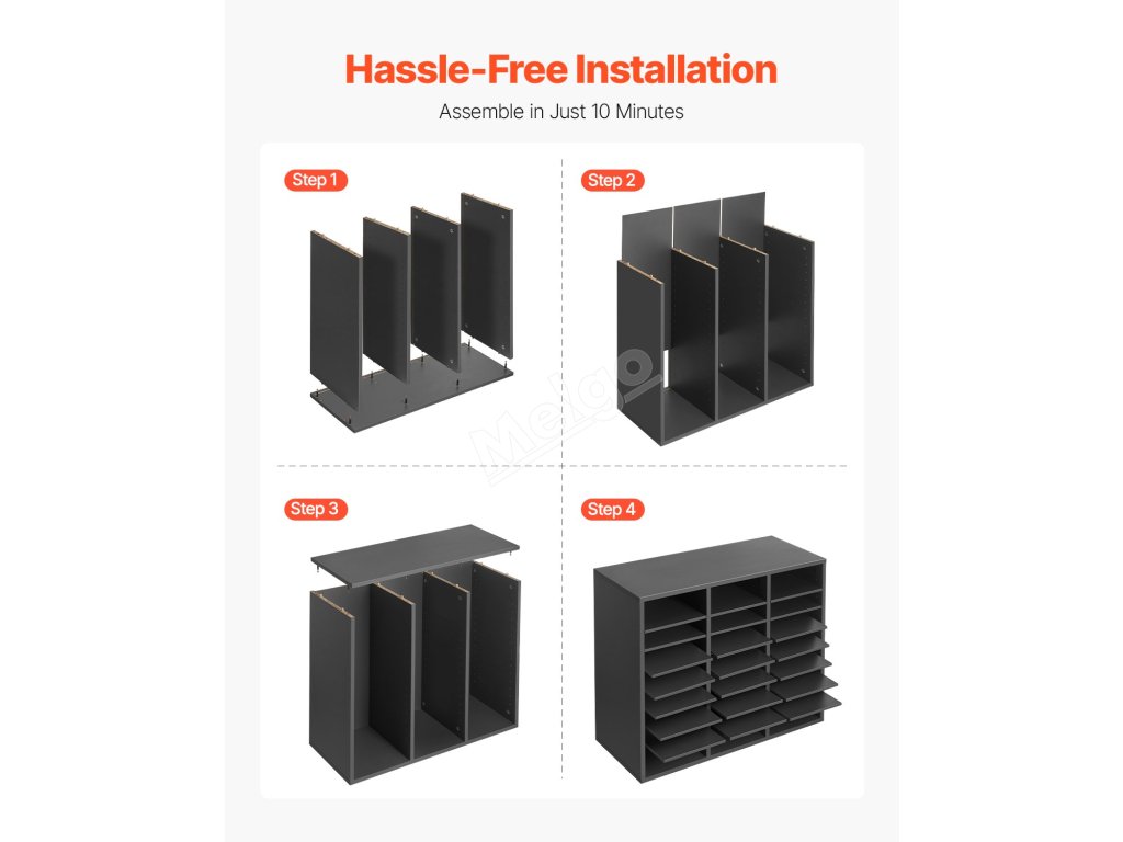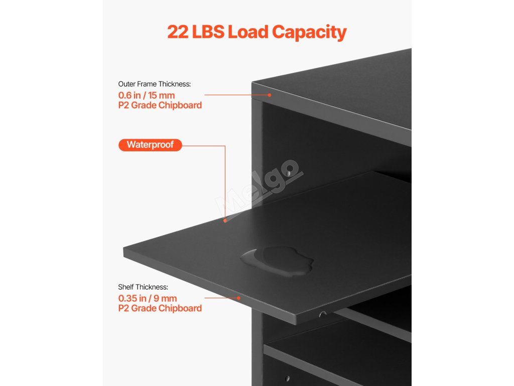 Každá police kancelářského boxu unese až 22 liber / 10 kg a pojme až 500 listů papíru A4. Tento organizér vám pomůže, ať už ukládáte těžké složky nebo každodenní kancelářské potřeby.