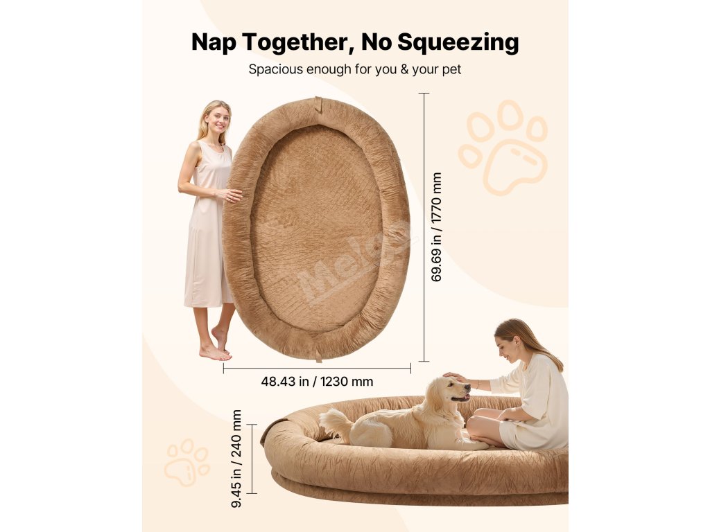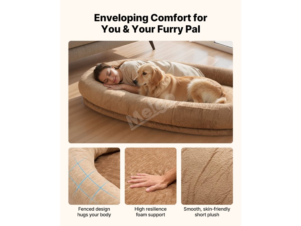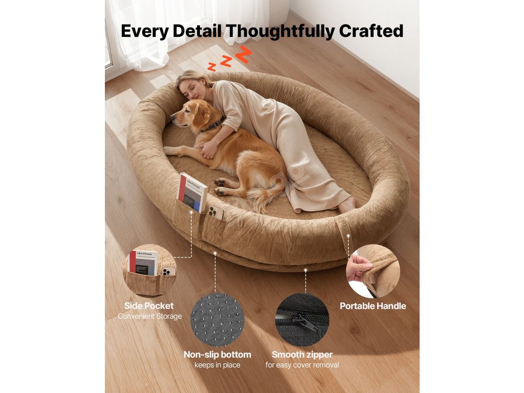 Tento lidský pelíšek pro psy vypadá jako roztomilý pelíšek pro štěňata, ale uvnitř skrývá ortopedickou výplň matrace z paměťové pěny, která vám a vašemu chlupatému příteli poskytne měkké a pohodlné místo, kde se můžete společně schoulit a být si nablízku, ať už si dáváte šlofíka, nebo jen tiše trávíte čas.