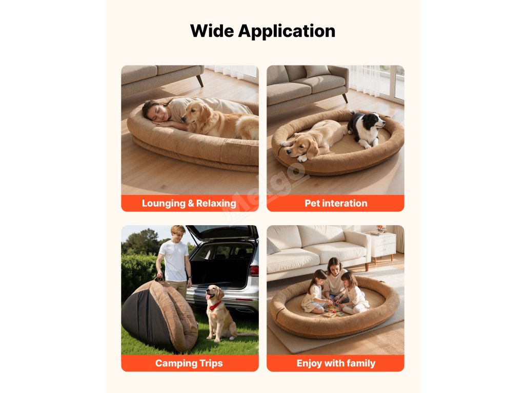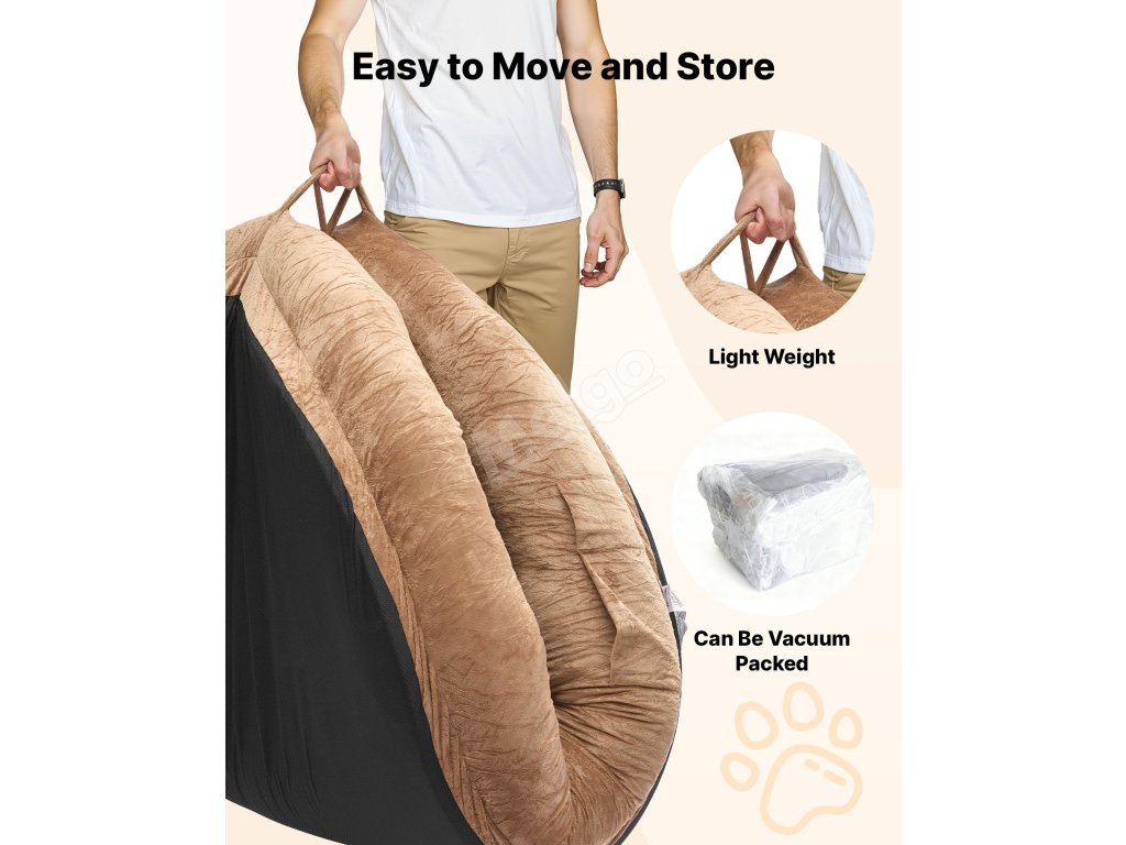 Po rozložení nabízí nadměrný pelíšek pro lidi útulné zákoutí, ve kterém se můžete se svým mazlíčkem schoulit a užívat si jemného odpočinku a teplé společnosti. Stane se malým společným útočištěm, které podporuje blízkost, klidný odpočinek a prosté chvíle, kterých si budete vážit.